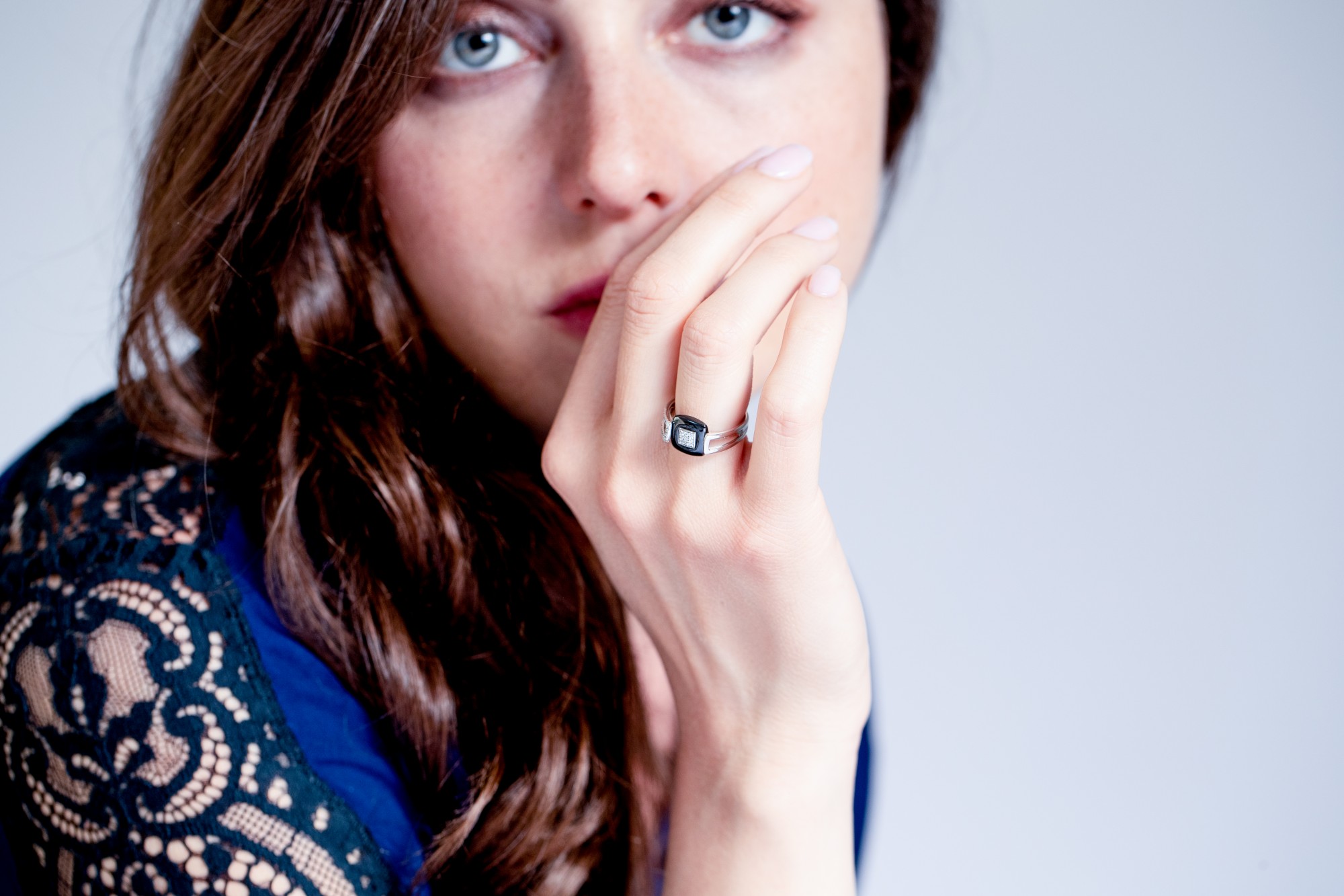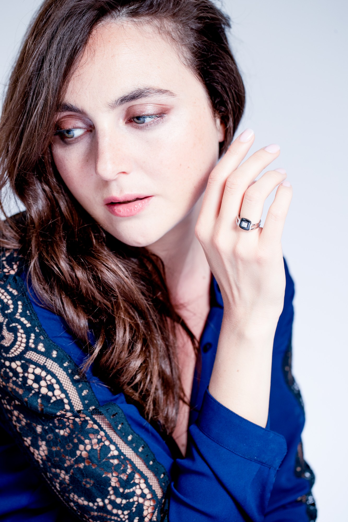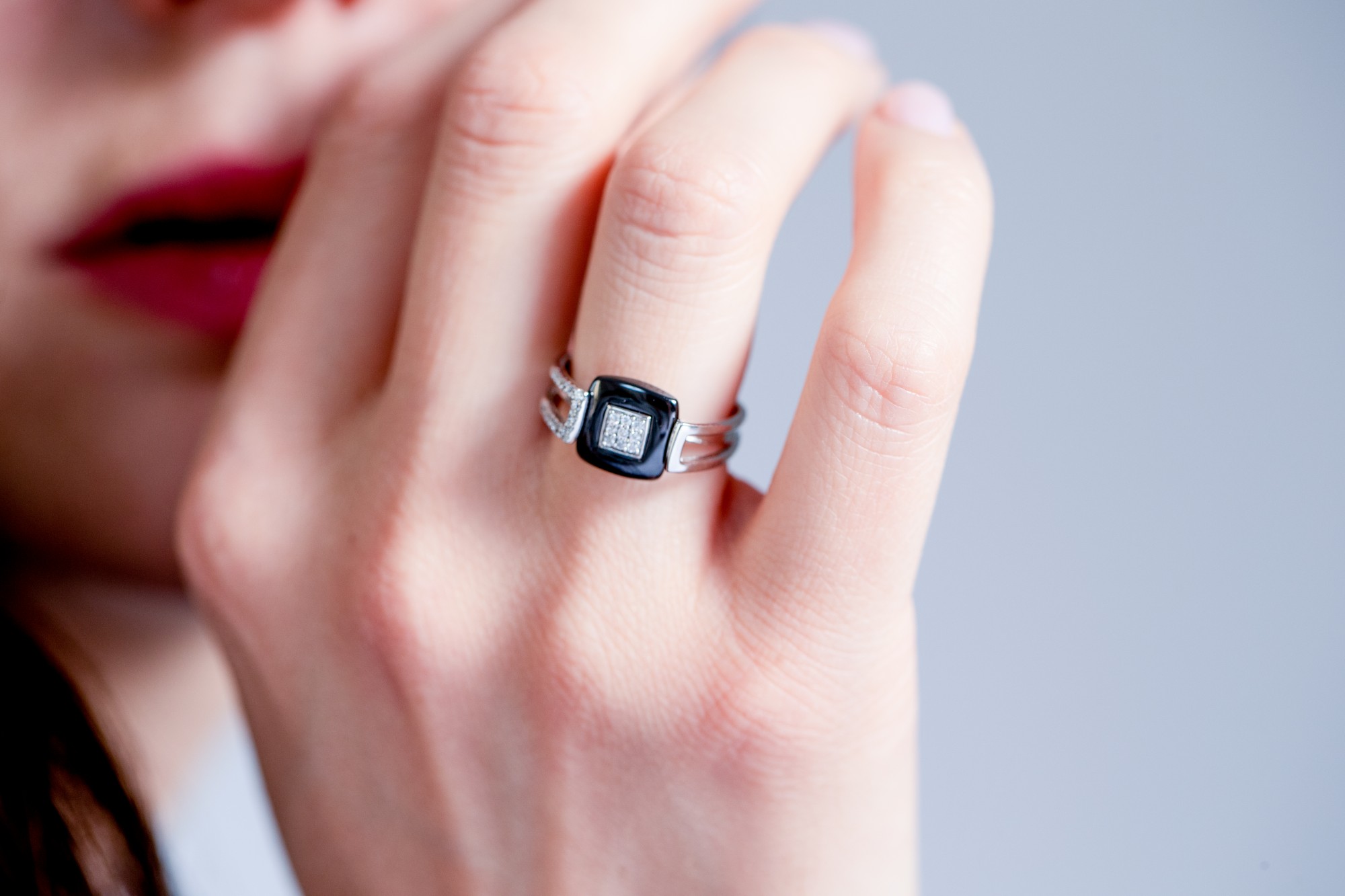 Ses branches en argent ajouré, finement serties, créent un équilibre parfait entre modernité et sophistication. La structure géométrique du bijou souligne la main avec élégance et caractère.