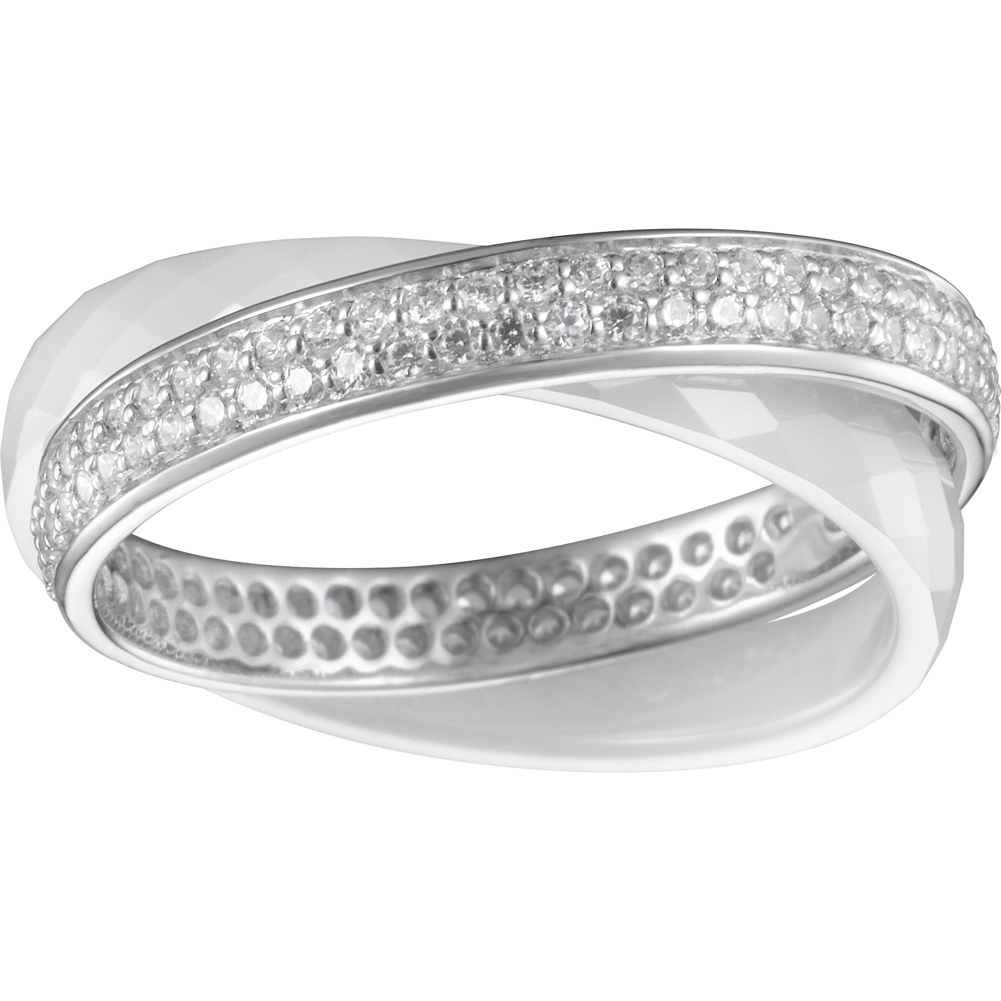 La bague Équilibre célèbre la rencontre entre mouvement et harmonie. Ses anneaux entrelacés en céramique blanche à relief et argent créent un jeu de lignes à la fois doux et lumineux. Les oxydes de zirconium viennent souligner cette architecture fluide d’un éclat cristallin.