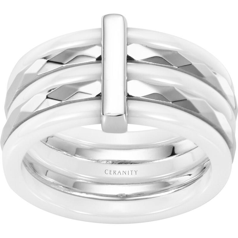 Élégante et structurée, la bague Craie joue sur le contraste des matières pour mieux capter la lumière. Son anneau alterne céramique blanche lisse et argent à relief, dessinant un motif géométrique subtil et contemporain.