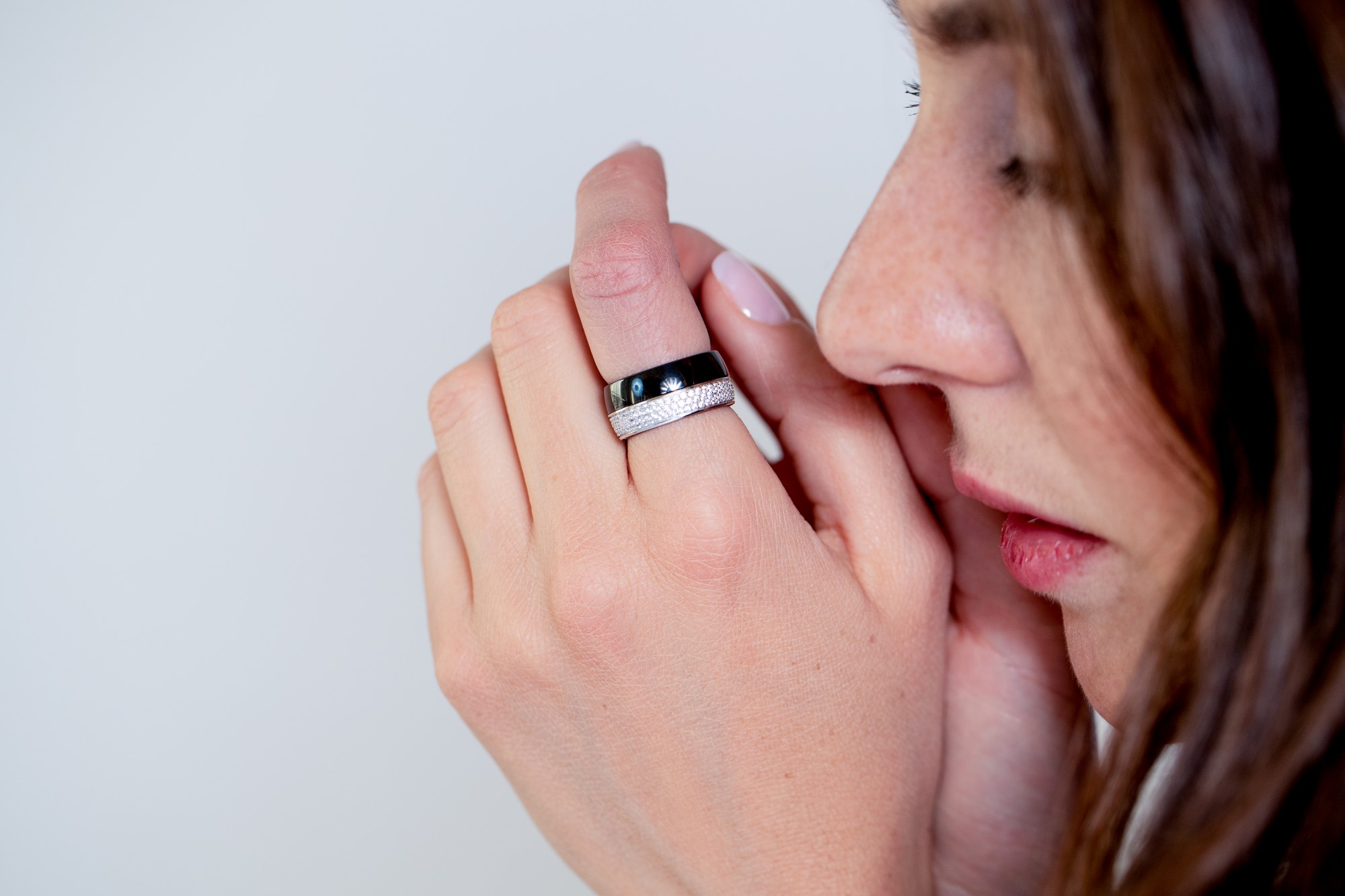 Sophistiquée et éclatante, la bague Blanc Mat incarne l’harmonie parfaite entre la lumière et la profondeur. Sa céramique noire lisse souligne la brillance d’un pavage d’oxydes de zirconium qui s’étend sur tout le tour de l’anneau, créant un éclat continu et hypnotique.