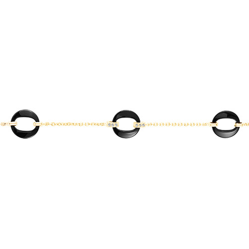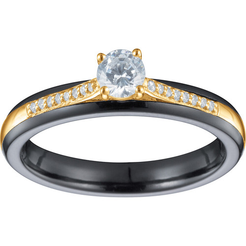 Sa monture fine en plaqué or 18 carats enlace un anneau de céramique blanche, rehaussé d’un scintillement d’oxydes de zirconium. En son centre, une pierre lumineuse attire le regard et évoque la clarté des beaux jours.