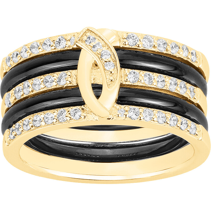Bague Essence noir pour Femme en céramique et Plaqué Or