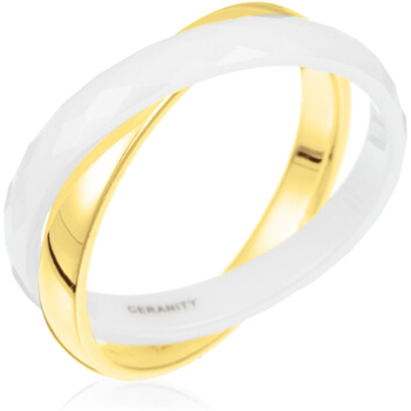 Lumineuse et raffinée, la bague Moustiers associe la douceur nacrée de la céramique blanche à relief à l’éclat chaud du plaqué or 18 carats.