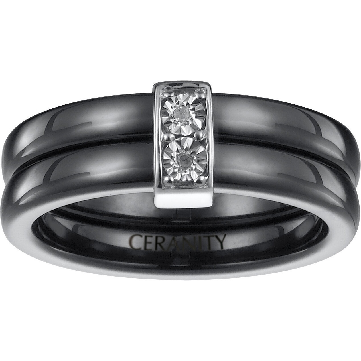Deux anneaux en céramique noire s’unissent autour d’un motif rectangulaire en argent 925 rhodié, serti de deux oxydes de zirconium qui captent la lumière avec éclat.
