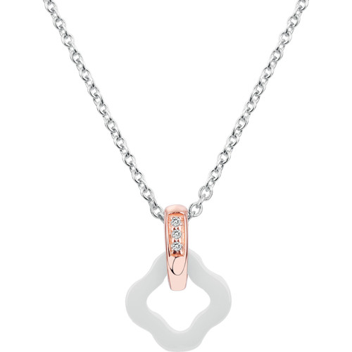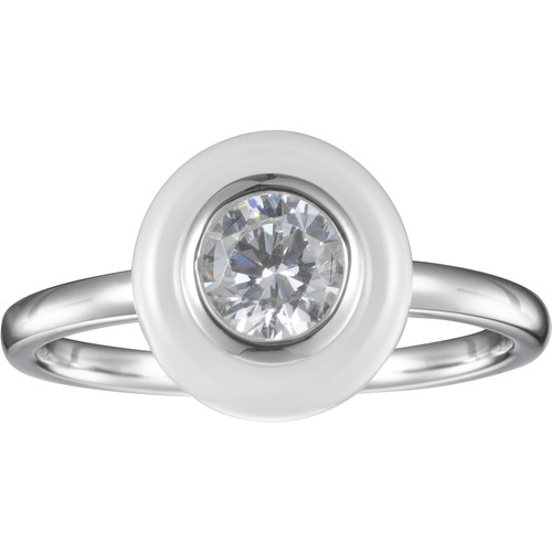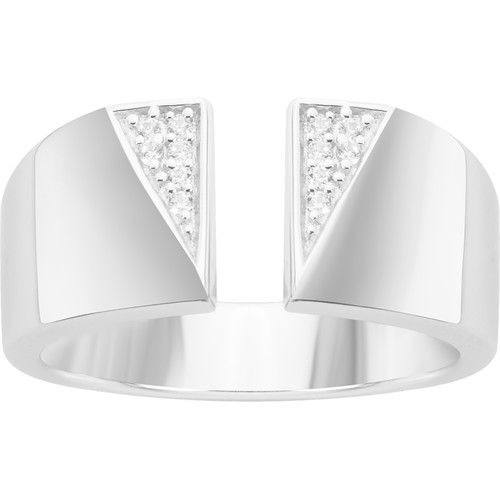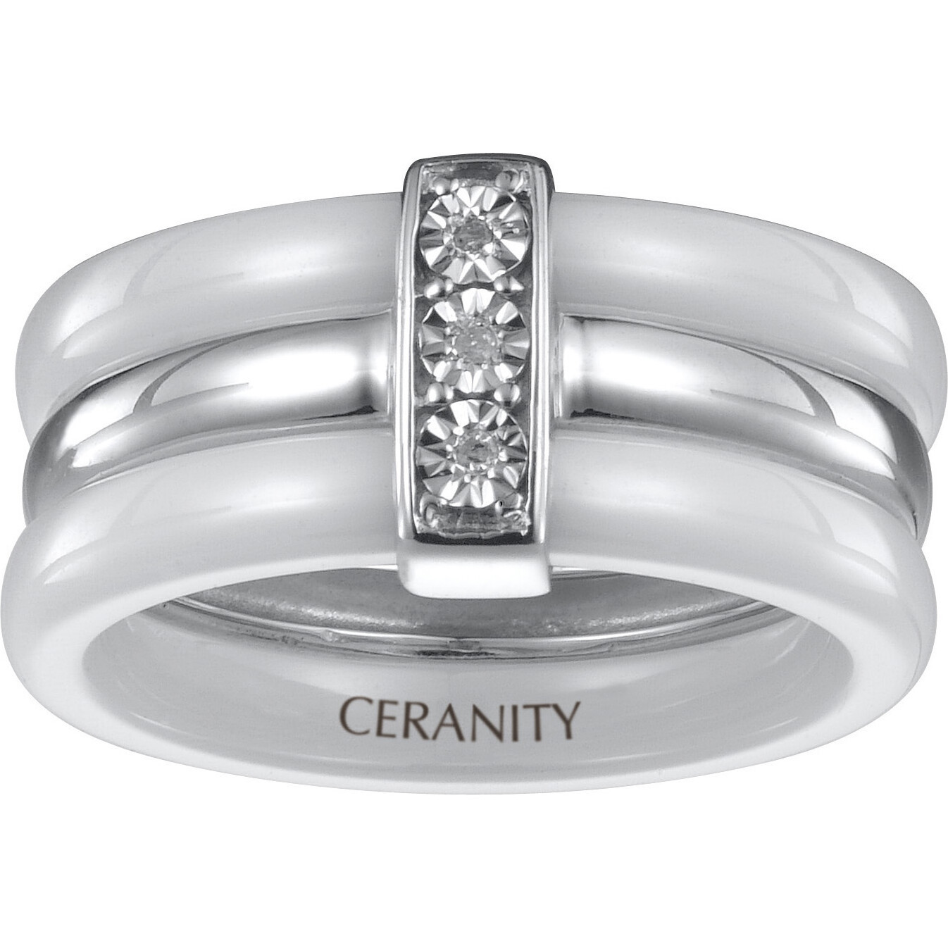 Ses trois anneaux — deux en céramique blanche et un en argent 925 rhodié — sont reliés par un motif serti de trois oxydes de zirconium, capturant chaque reflet avec finesse.