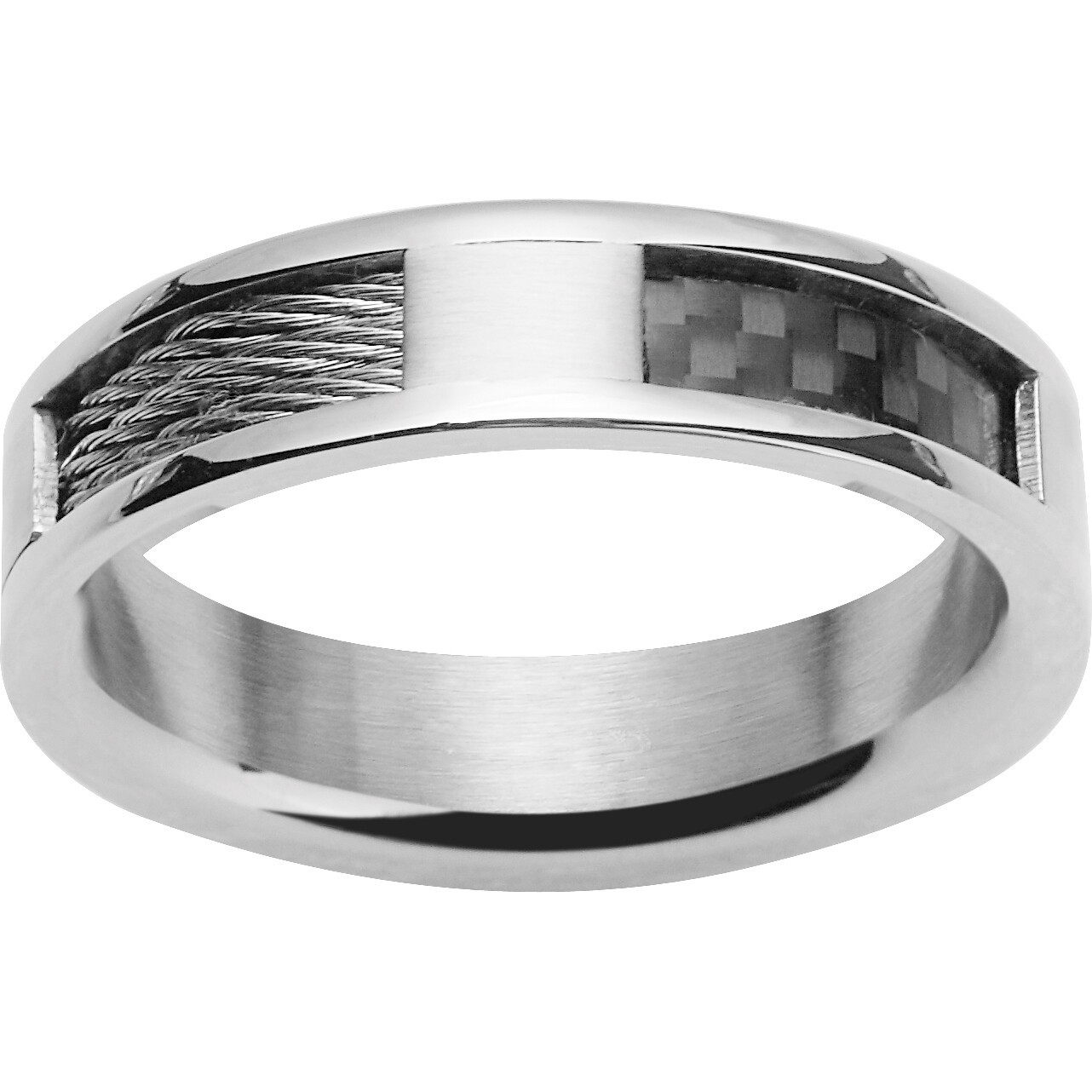 Bague pour homme en acier 316L inoxydable blanc brillant, avec carbone et câble. La bague Blaise offre un élégant mélange d'acier inoxydable, de carbone noir et de câble. Ces matériaux robustes permettent à cet accessoire, garanti 2 ans, d'être porté quotidiennement sans qu'il s'oxyde. Un bijou pour affirmer ton caractère. D'esprit industriel, cet anneau Phebus est à la fois original et actuel. Doté d'un design très masculin, il fait partie des bagues parfaites pour les hommes qui souhaitent apporter une touche contemporaine et artistique à leur style.