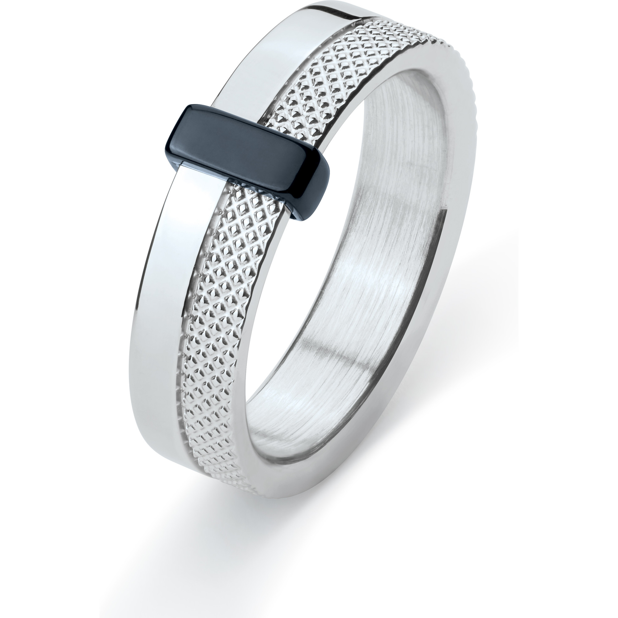 Bague pour homme Phebus en acier 316L inoxydable et PVD noir brillant. Si tu aimes porter tes bijoux au quotidien, il est important que ces derniers ne s'abîment pas et résistent au temps. C'est le cas de notre bague Connor. Elle est fabriquée en acier inoxydable et garantie deux ans. Du PVD noir brillant entre également dans sa composition, pour un visuel original et impactant. Un design minimaliste et original. Cette bague se présente sous la forme d'un anneau texturé et d'un anneau blanc brillant en acier inoxydable, réunis par une pièce en PVD noir. Ce mélange confère au bijou un aspect très moderne, qui plaît à de nombreux hommes. Démarque-toi avec cet accessoire qui ne passe pas inaperçu !.