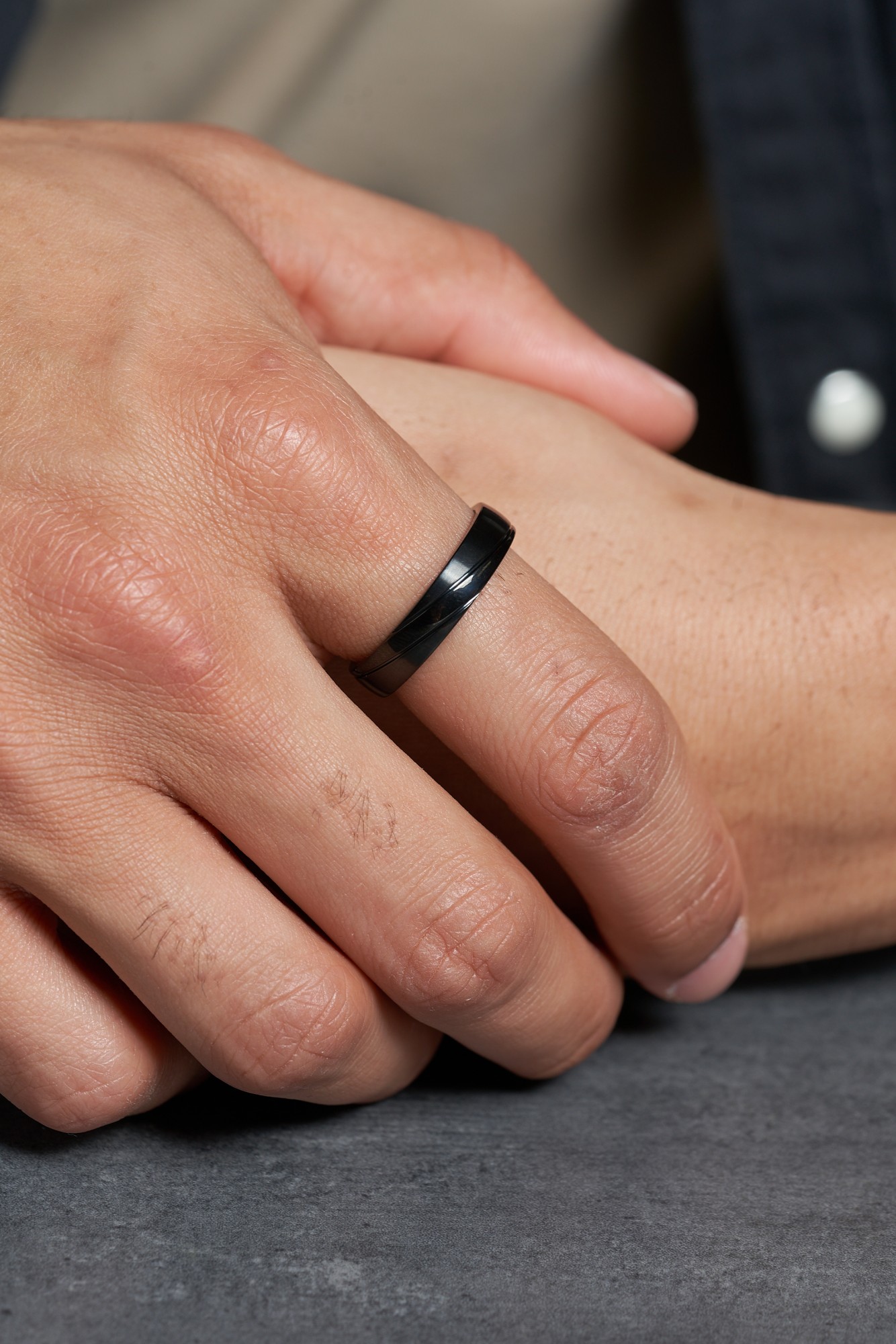 Une bague faite pour durer. La bague Fuego pour homme est un bijou fabriqué à base d'acier 316L inoxydable PVD noir brillant, un matériau pensé pour durer. Avec cette composition, tu peux porter ton accessoire au quotidien sans crainte. Le bijou est garanti 2 ans et gravé de deux traits obliques subtils pour plus d'originalité. Un design simple et élégant pour cet anneau en acier noir. La bague Fuego de Phebus a été pensée pour être élégante grâce à son design minimaliste en acier inoxydable et son intense couleur noire. Tu peux la porter avec n'importe quel style pour apporter une touche d'élégance à ton look, sans effort ! Affirme ta personnalité tranchée avec cet accessoire unique.