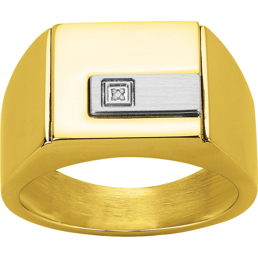 La résistance et l'attractivité de l'acier 316L inoxydable. Cette chevalière pour homme Phebus en acier et PVD jaune brillant, ornée d'un diamant blanc de 0,005 carat, décuple ta prestance et ton allure. Profite d'une bague garantie 2 ans, qui t'offre un style détonant. Un bijou Christiano au style inflexible. Une bague en acier inoxydable évoque la force. Phebus te propose cet accessoire au design ultramoderne, agrémenté de formes viriles et d'une dorure éclatante. Si tu aimes te mettre en avant, il est fait pour toi !.