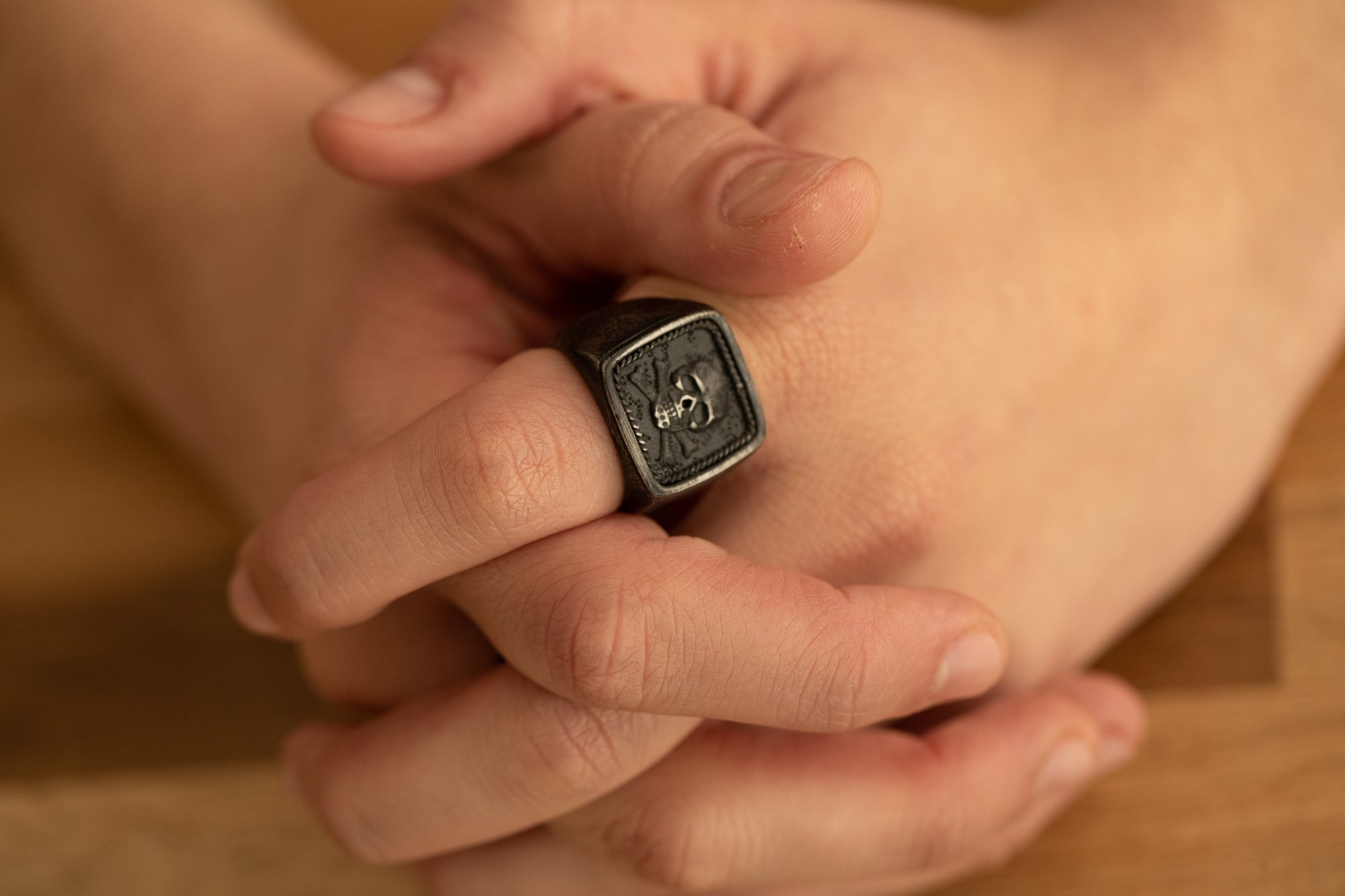 Un bijou signature pour les hommes téméraires et audacieux. Découvre la bague Tête de mort, de type chevalière à tête de mort, en acier 316L inoxydable et au style vintage. Cet accessoire Phebus, évoquant loyauté et attachement à sa communauté, est garanti 2 ans. Impressionne avec une bague skull de qualité. Signe de masculinité, ce type de bijou était porté par les guerriers et symbolisait courage, ténacité et force d'âme. Tu peux l'associer avec des bracelets ou pendentifs inoxydables reprenant cette thématique, pour afficher un look assumé qui ne manque pas de susciter l'intérêt. Pour un style plus discret, cette pièce forte au motif emblématique se suffit à elle-même.