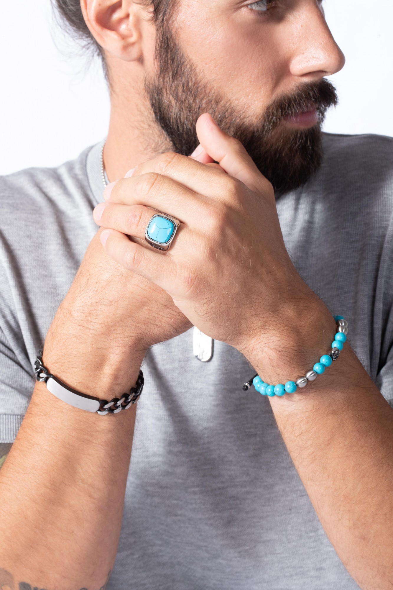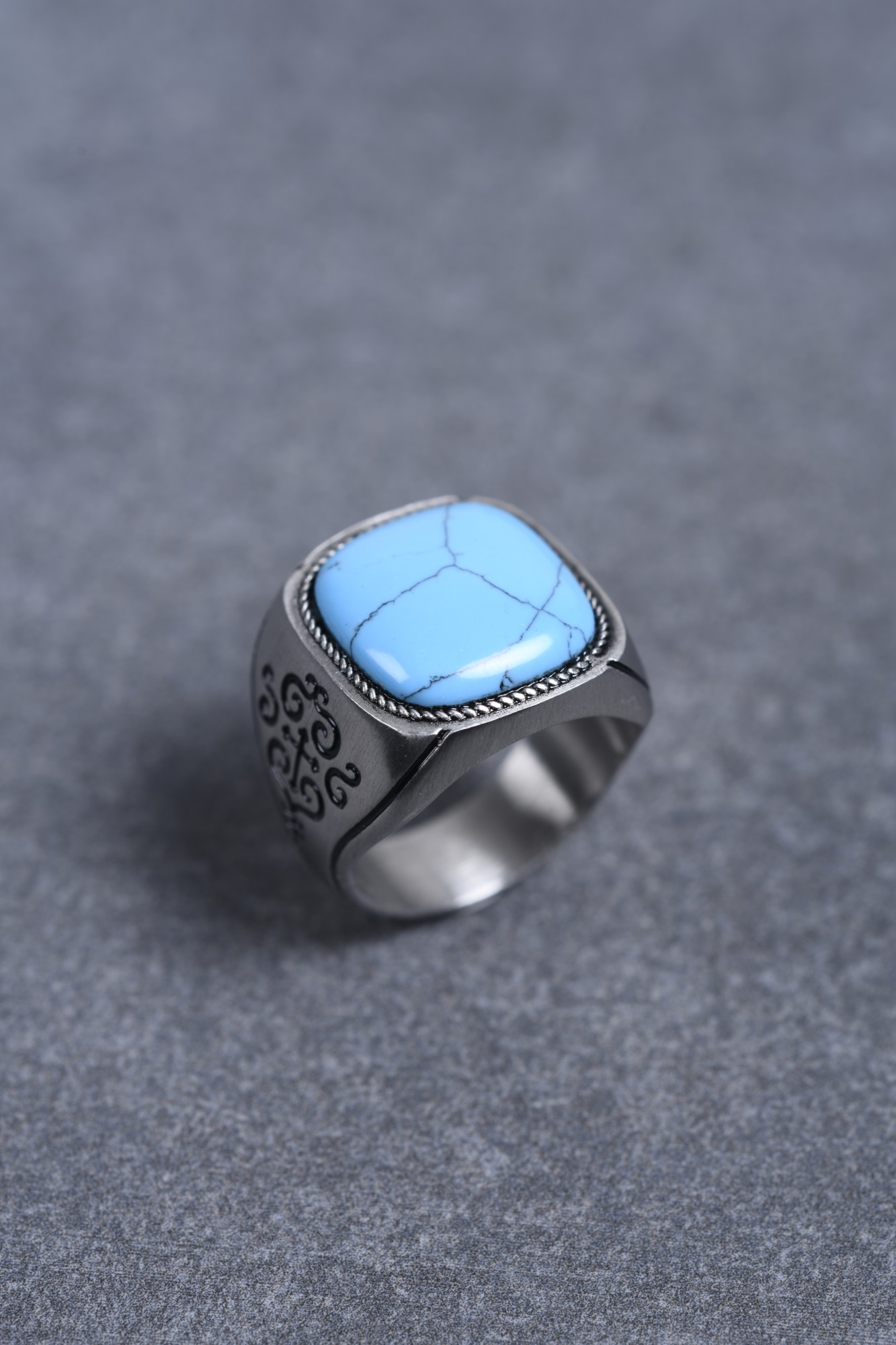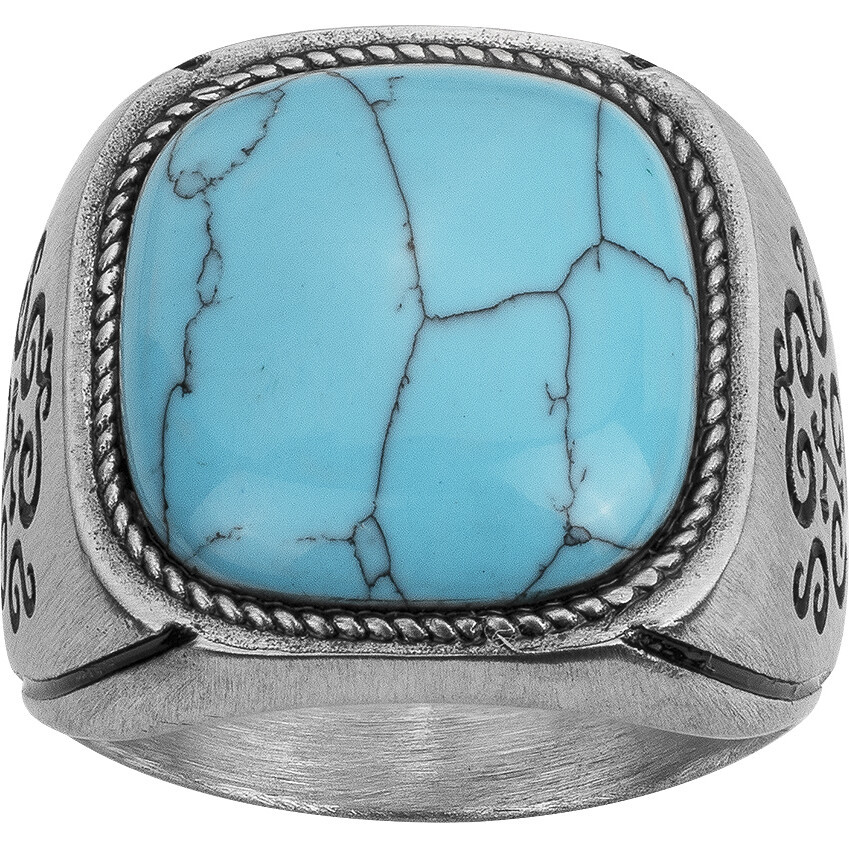 Un magnifique bijou chargé d'histoire. La bague Zinédine, de type chevalière, est faite d'acier 316L inoxydable blanc. Elle porte une lumineuse pierre bleu turquoise reconstituée. Des arabesques et des motifs en croix symboliques sont gravés de chaque côté de la bague. Garantie 2 ans, cette bague unique pour homme t'offre sa beauté et ses vertus pour de nombreuses années. Une pierre turquoise aux multiples vertus. Réputée pour apaiser, mais aussi favoriser l'empathie et l'épanouissement, cette pierre était également utilisée par les Apaches pour la protection des guerriers. Que ton style soit ethnique ou bohème, n'hésite pas à associer ce bijou inoxydable Phebus à des bracelets de perles pour laisser s'exprimer ta voix.