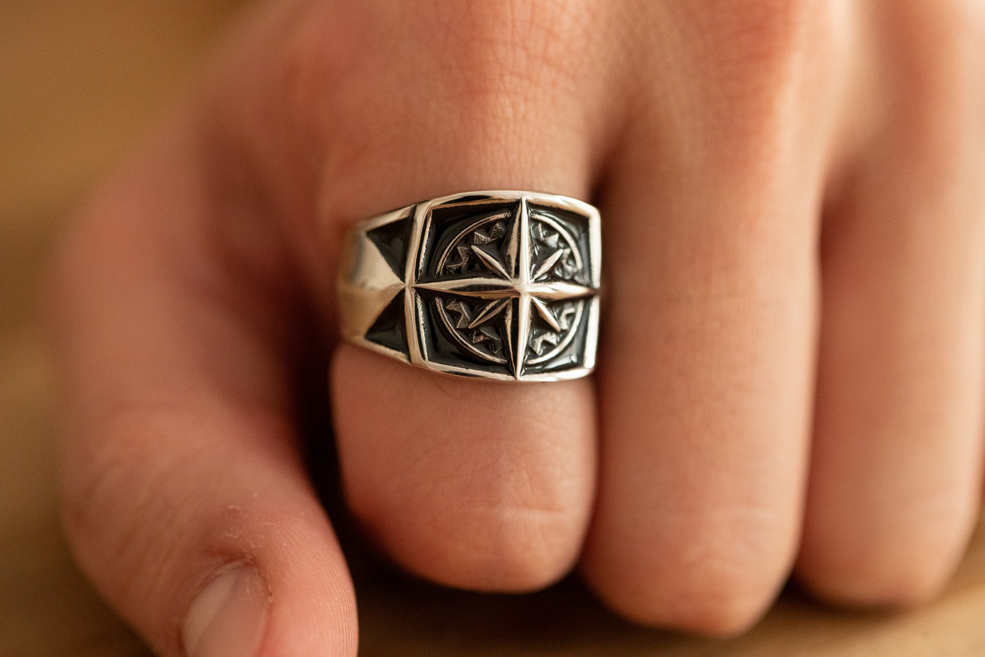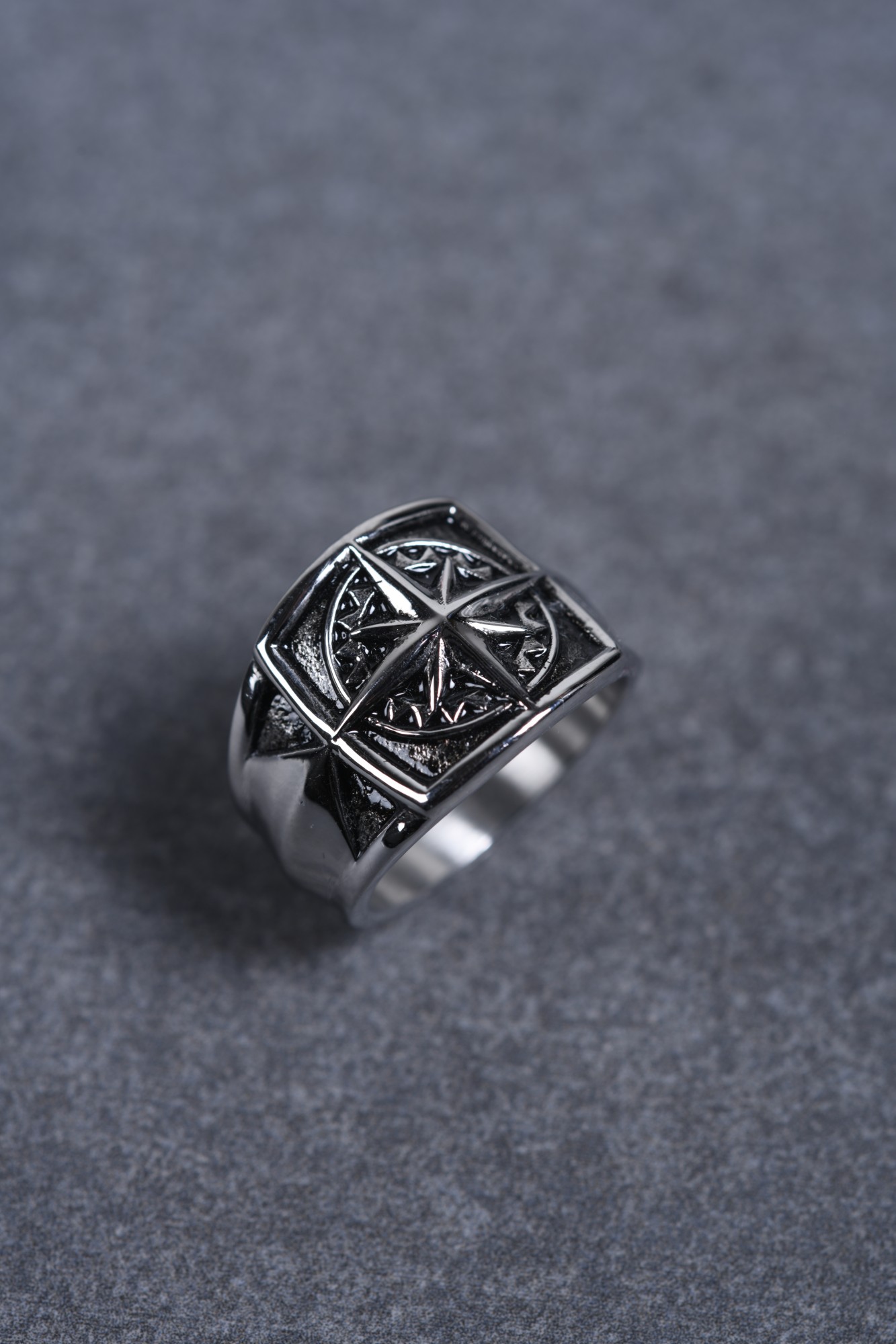 Un motif dans le vent et des finitions soignées. La bague pour homme Curtis, affichant un motif de compas évocateur, est composée d'acier 316L inoxydable. Particulièrement esthétique, ce bijou noirci apporte profondeur et mystère à ton style. Adopte ce bel objet garanti 2 ans, il ne te quittera plus et durera de nombreuses années. Un bijou fascinant aux multiples évocations. Rappelant une boussole de navigateur ou une rose des vents aux détails minutieux, cet accessoire peut autant représenter la voie à suivre que se faire le symbole de voyages et d'expériences. Cette bague Phebus en acier inoxydable reprend les codes de l'univers pirate et apporte à tes tenues son côté captivant : à toi d’en jouer pour surprendre !.
