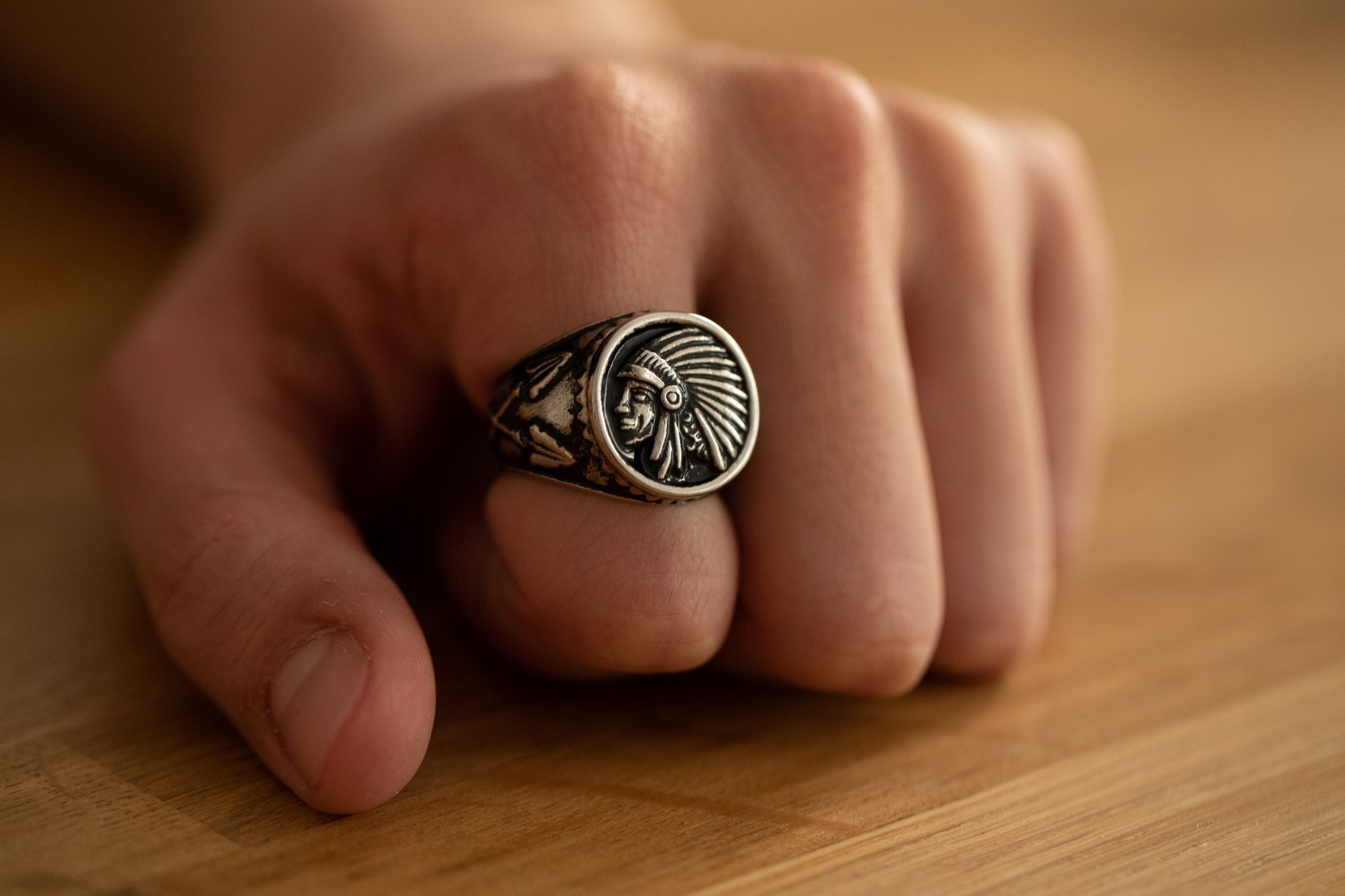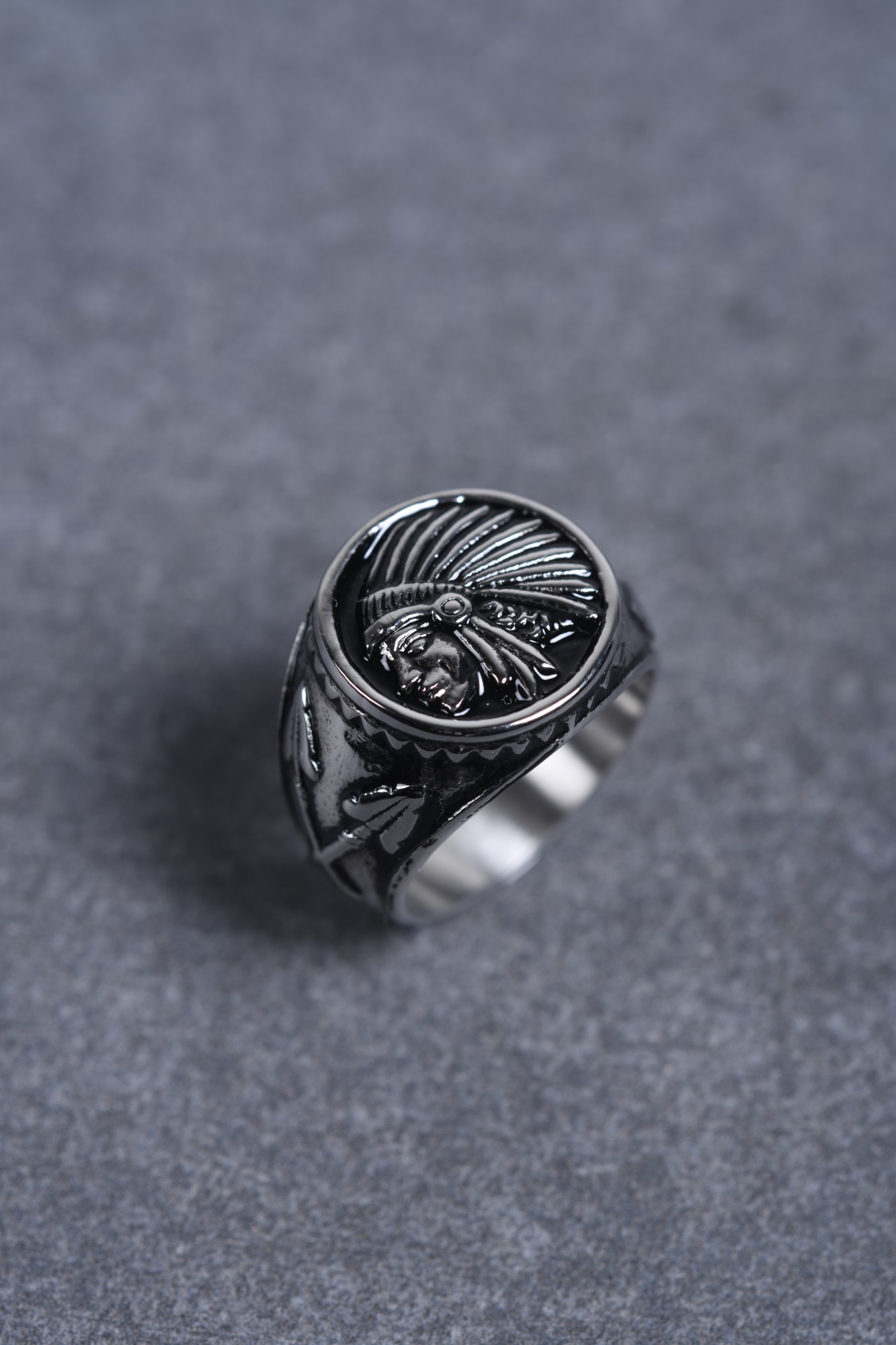 Une bague à toute épreuve. Garanti 2 ans, cet accessoire Phebus te fait profiter de la solidité de l'acier 316L inoxydable, un matériau réputé pour la conception de bijoux qui durent. Il est orné d'un écusson rond gravé et bordé de petits picots, qui lui apportent un côté insolite. Une chevalière pour les hommes indépendants et déterminés. Tu te sens l'âme d'un Indien attiré par les plaines américaines ? Enfile cette bague inoxydable, ornée d'un motif représentant un Iroquois à la coiffe traditionnelle. Grâce à elle, donne libre cours à tes envies d'évasion et de chevauchées !.