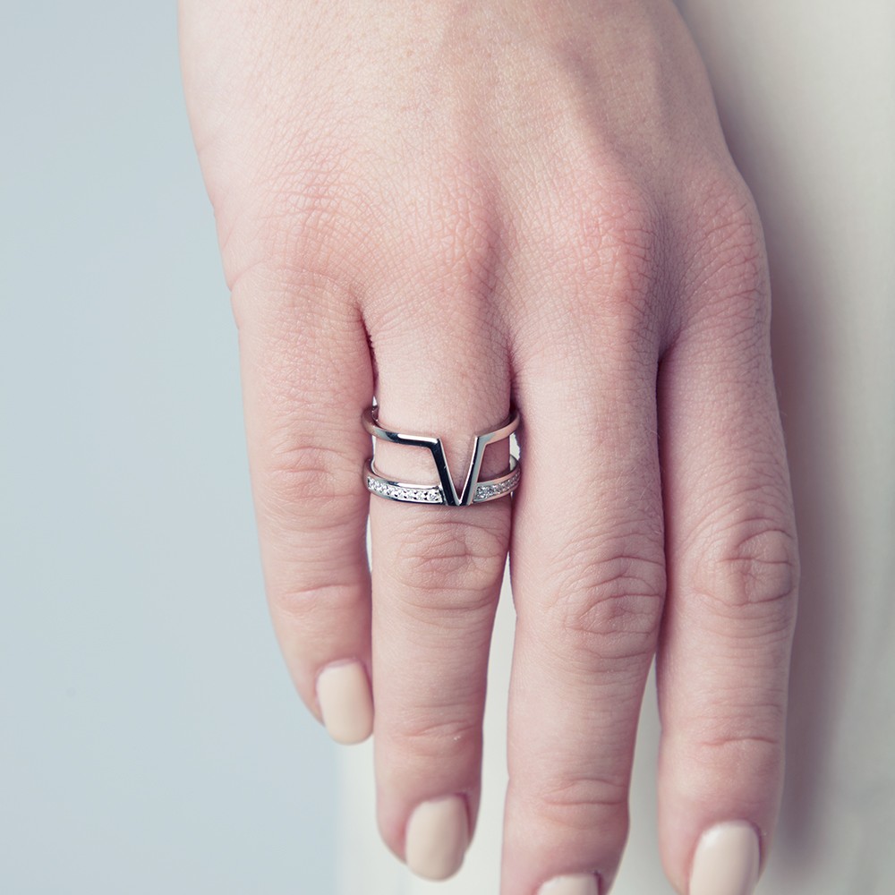 Bague pour femme en céramique et argent 925 millièmes rhodié.