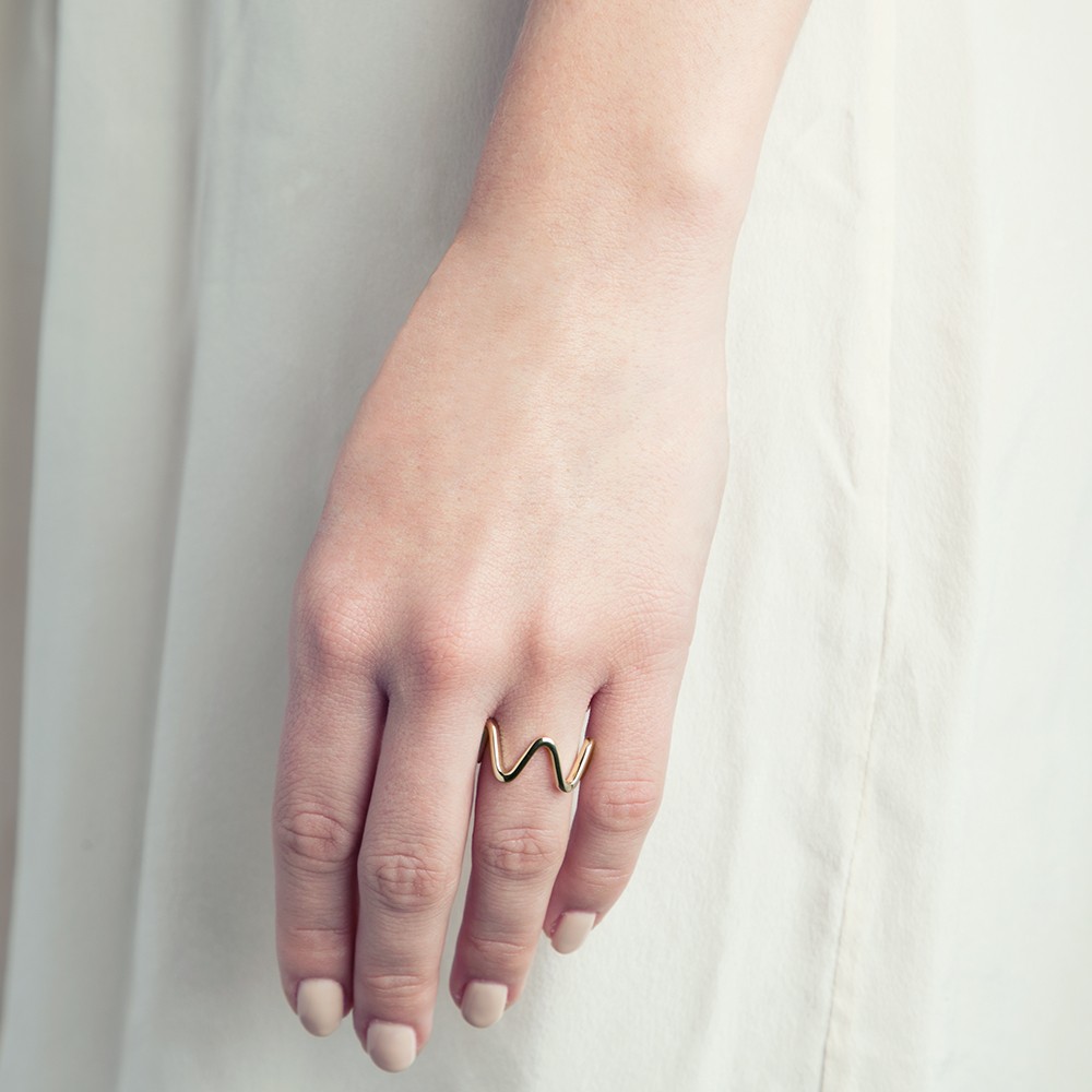 Bague pour femme en céramique et plaqué or 18 carats 750 millièmes.