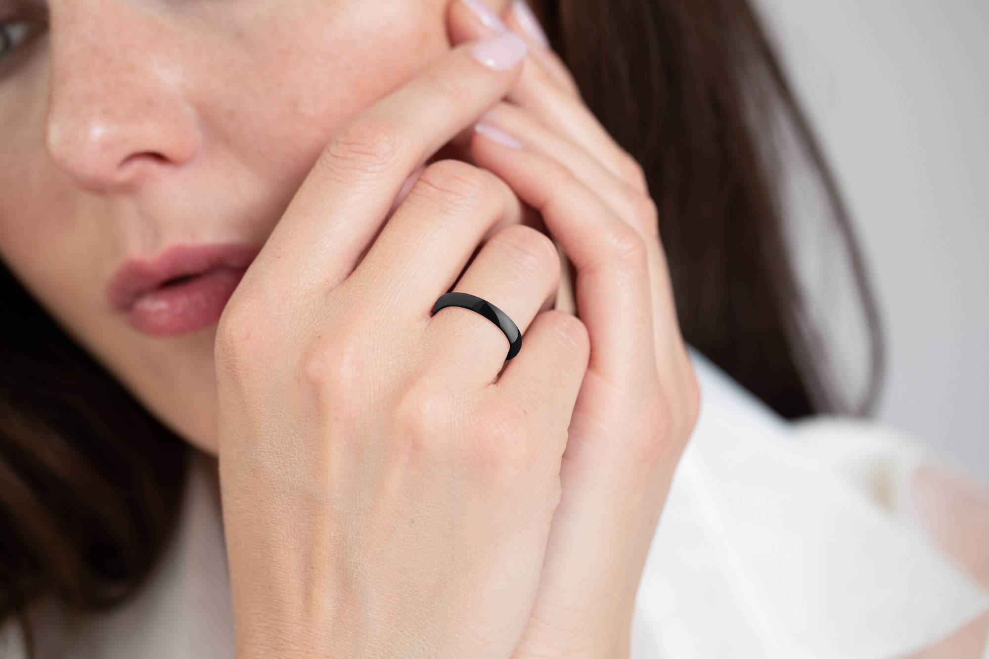 Bague clara noir pour femme en céramique et céramique.