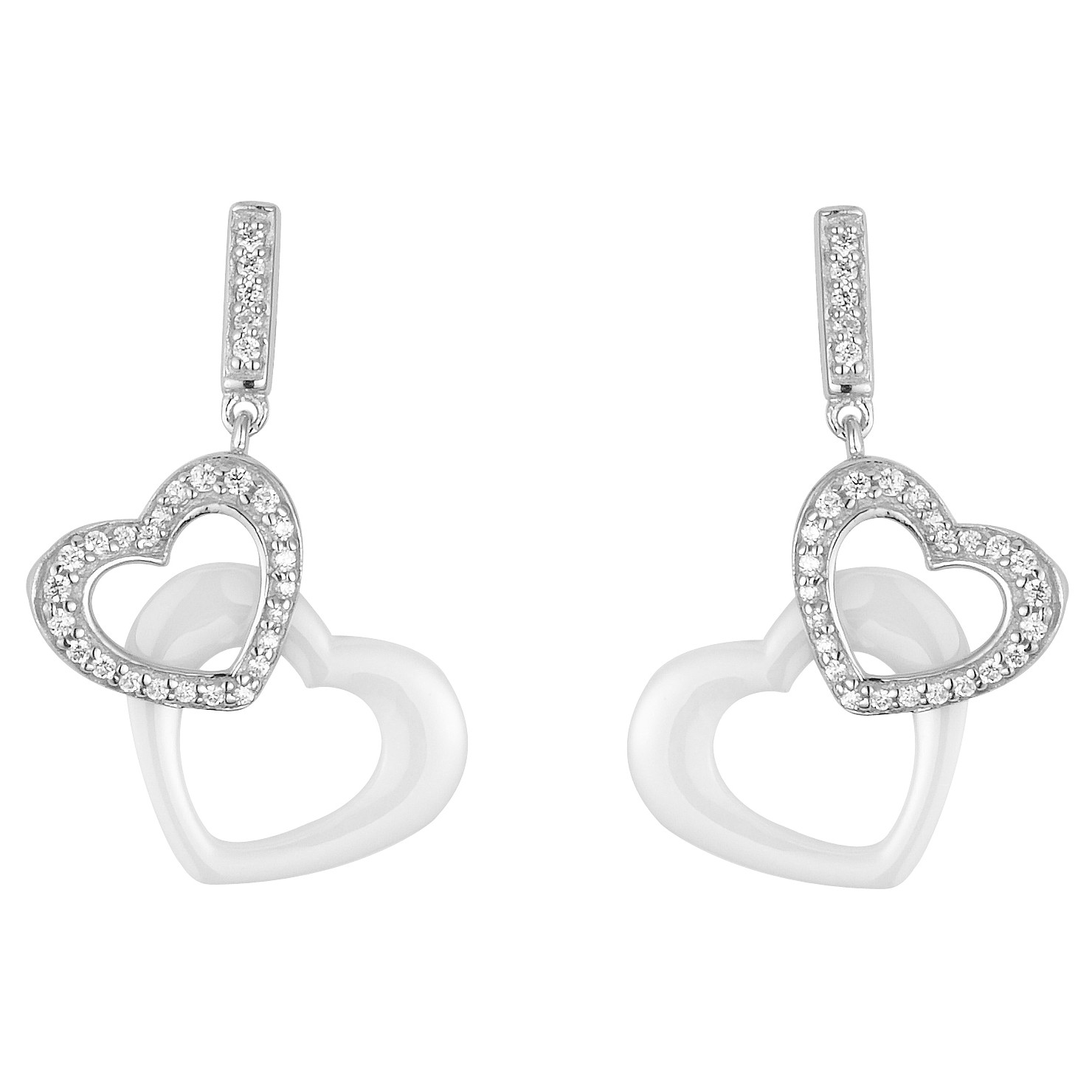Deux cœurs entrelacés, l’un sculpté en céramique blanche, l’autre pavé d’oxydes de zirconium, s’unissent dans une danse éclatante. L’argent 925 rhodié vient sublimer l’ensemble, apportant une touche de modernité et de douceur intemporelle.