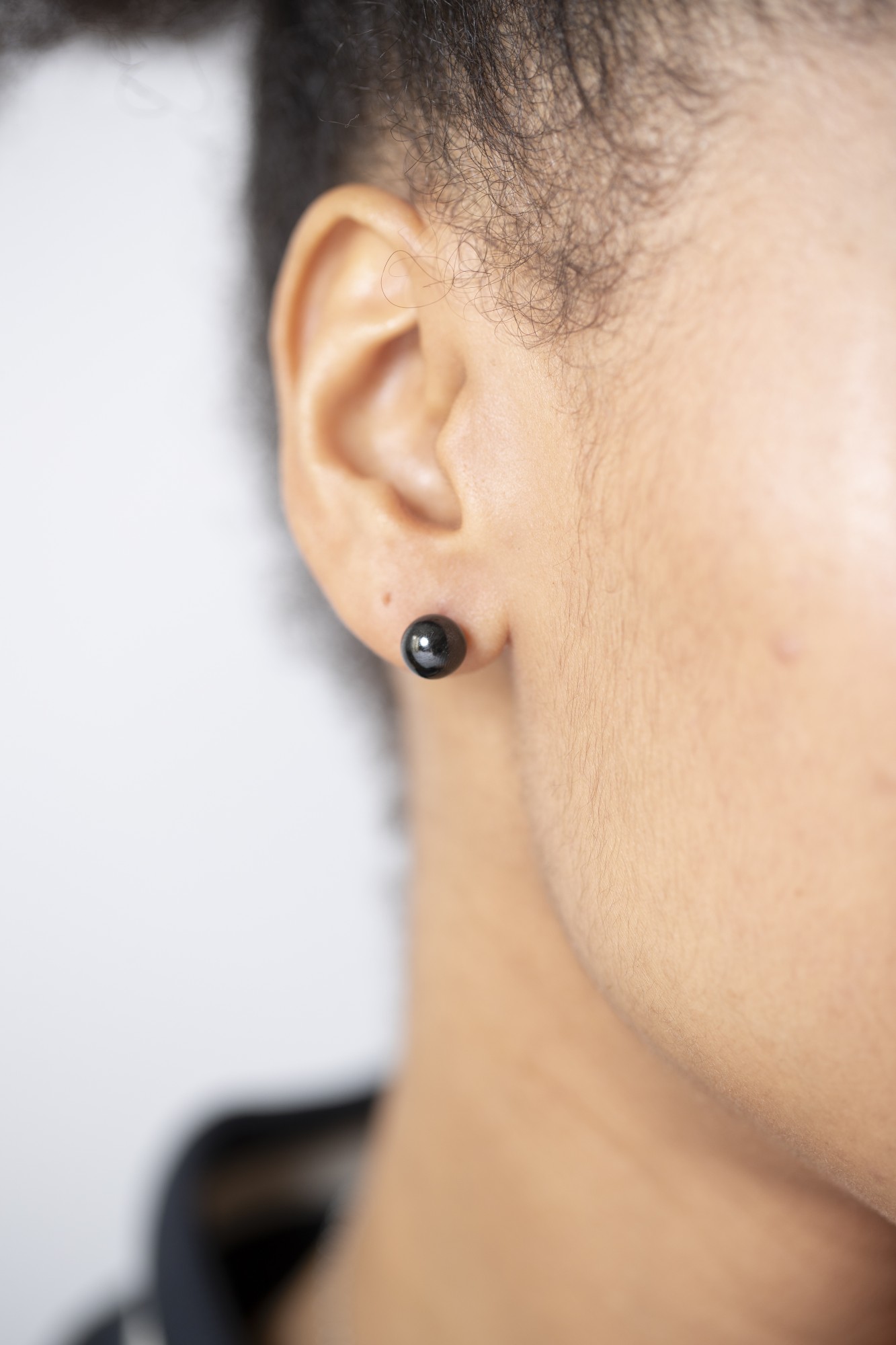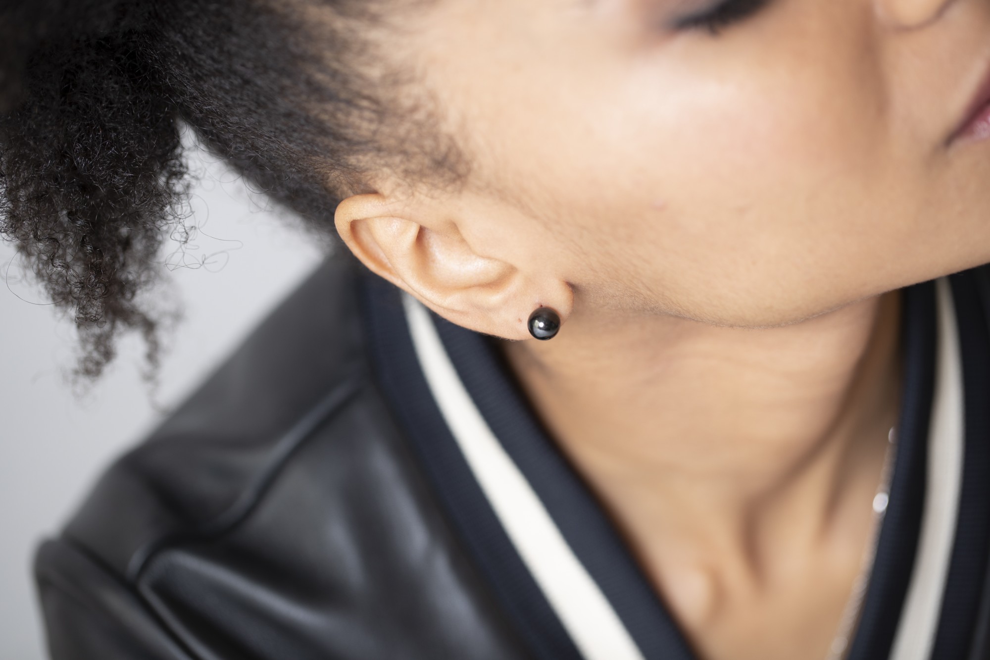Minimalistes et graphiques, les boucles Kaolin jouent sur le contraste entre céramique noire et argent 925 rhodié.