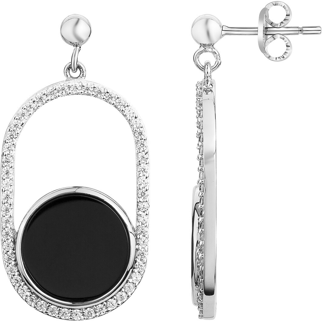 Leur ovale élancé en argent 925 rhodié se pare d’une constellation d’oxydes de zirconium, entourant un disque central en céramique noire d’une profondeur intense.