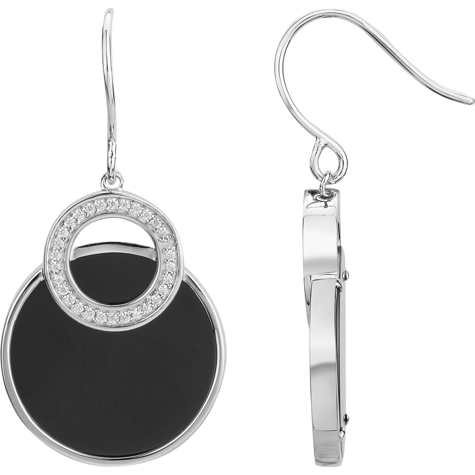 La profondeur de la céramique noire contraste avec l’éclat lumineux de l’argent 925 rhodié, délicatement orné d’oxydes de zirconium. Leur design graphique évoque une élégance intemporelle, à la fois contemporaine et raffinée, qui capte la lumière avec grâce à chaque mouvement.