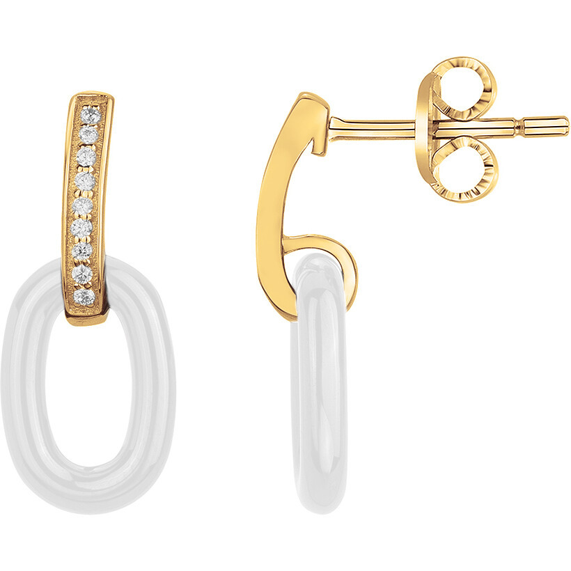 Les boucles d’oreilles Silice captent la lumière dans un jeu d’équilibre entre pureté et éclat. Leur anneau en céramique blanche, d’un fini lisse et lumineux, s’allie à la chaleur du plaqué or 18 carats, souligné d’un délicat pavage d’oxydes de zirconium,