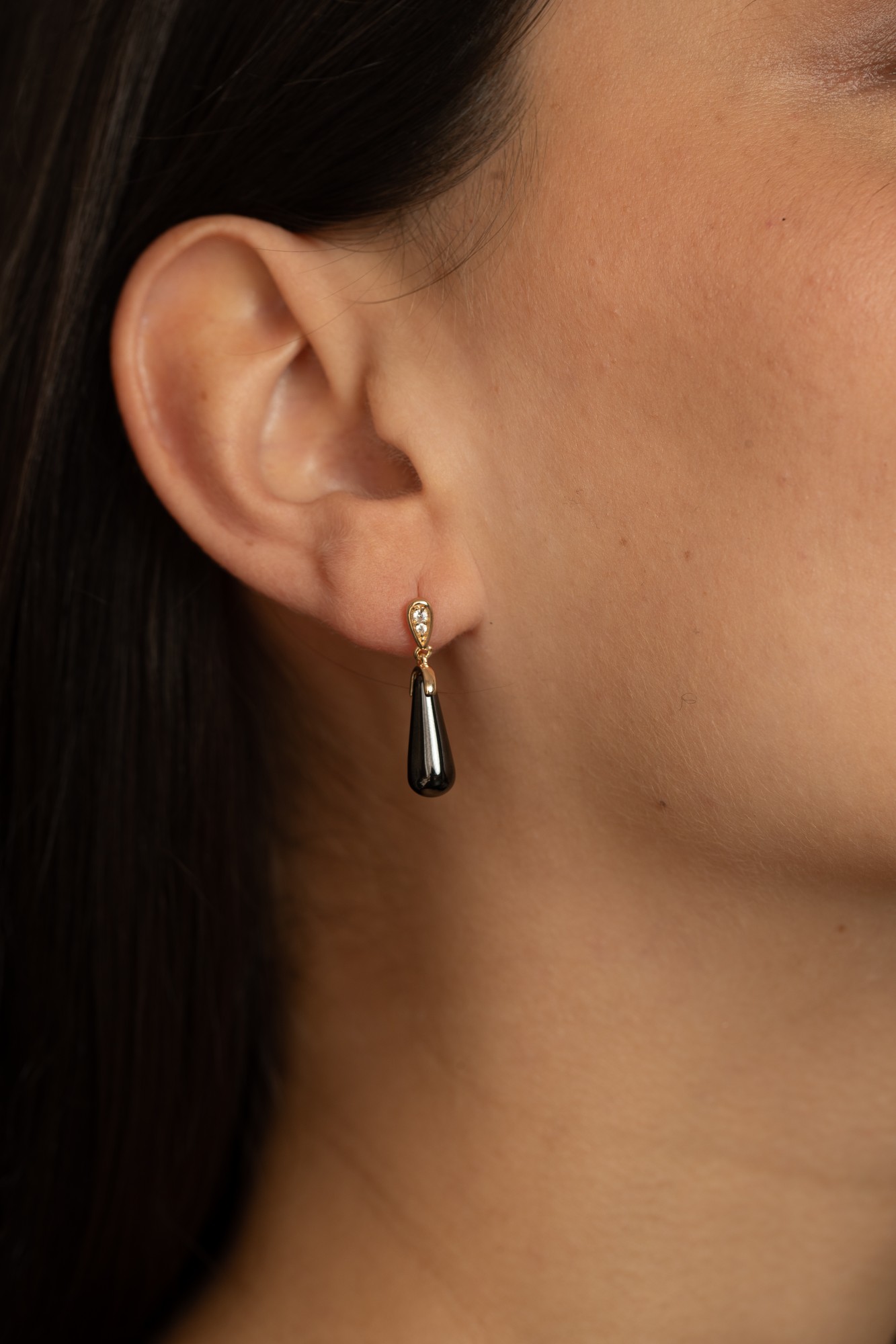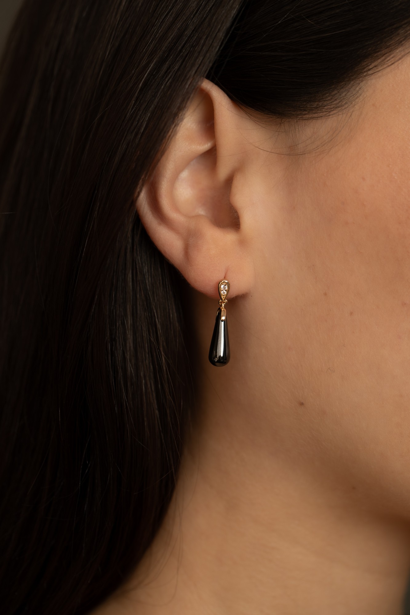 Les boucles Écume en céramique noire et plaqué or 18 carats évoquent l’élégance d’une goutte suspendue, à la fois fluide et sophistiquée.