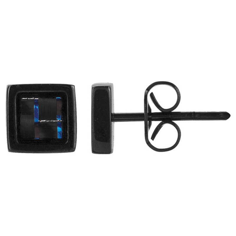 Boucles d'oreilles clous Phebus en acier inoxydable pour homme. Les boucles d'oreilles Cédric sont fabriquées en acier 316L inoxydable PVD noir brillant avec carbone bleu, ce matériau leur permet de durer dans le temps. Elles sont également très faciles à porter et restent bien en place grâce à leurs fermoirs poussettes. Une boucle d'oreille en acier pour homme sobre et efficace. Le carbone bleu confère à ces boucles d'oreilles une touche d'originalité qui améliore n'importe lequel de tes looks. Elles sont faites pour toi si tu souhaites te démarquer et t'affirmer, tout en restant discret.