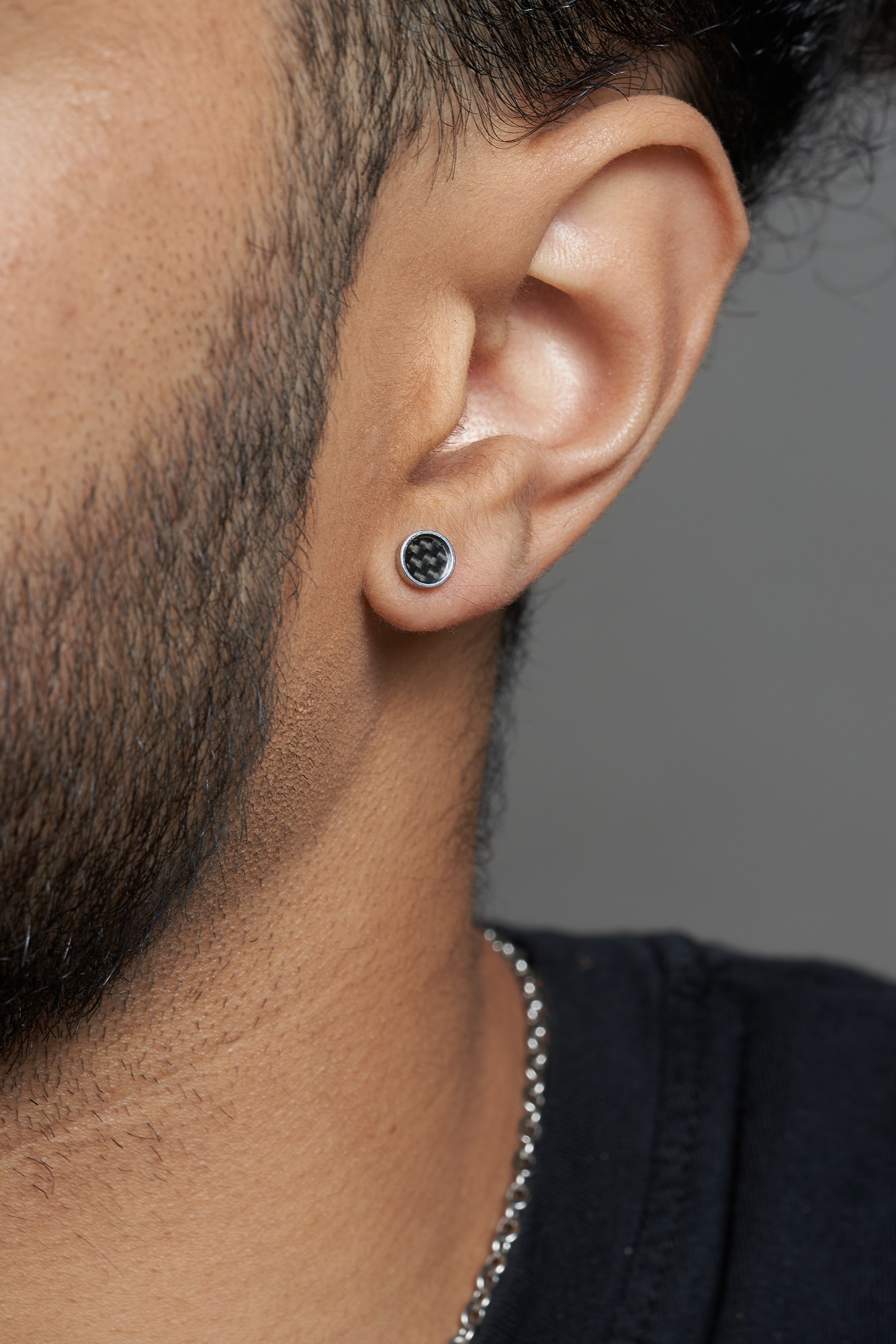 Boucles d'oreilles clous pour homme en acier 316L inoxydable blanc brillant avec carbone noir. Les boucles d'oreilles Séverin de Phebus résistent aux années grâce à leur fabrication à partir d'acier inoxydable de haute qualité. Garanties 2 ans, elles disposent d'un fermoir poussette qui permet de les porter en toute sécurité. L'alliance du carbone et de l'acier pour cette boucle d'oreille élégante. Avec sa forme ronde et ses couleurs contrastées (noir et blanc brillant), ce bijou sobre et élégant termine avec soin n'importe quelle tenue. Ces petits bijoux d'oreilles sont des accessoires originaux qui t'aident à affirmer ta masculinité et ta personnalité haute en couleur.