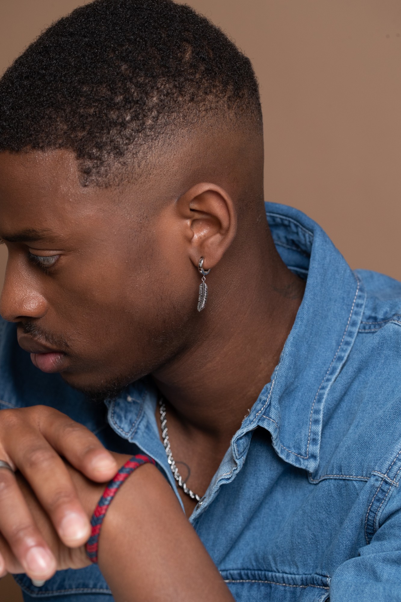 Boucles d'oreilles Plume pour Homme en céramique et Acier