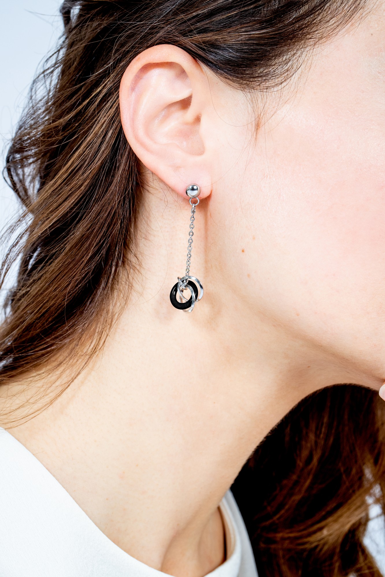 Boucles d'oreilles Ellie noir pour femme en céramique et acier 316L.