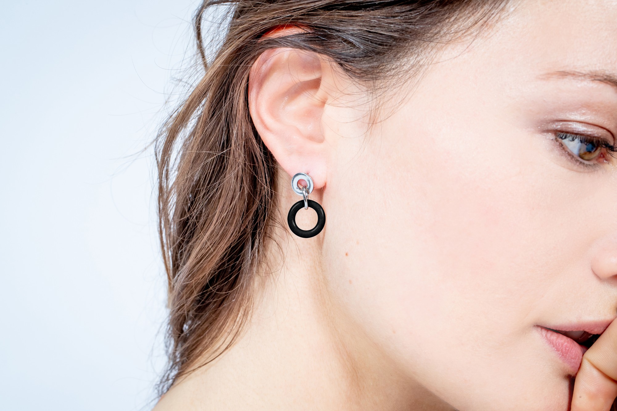 Boucles d'oreilles Alix noir pour femme en céramique et acier 316L.