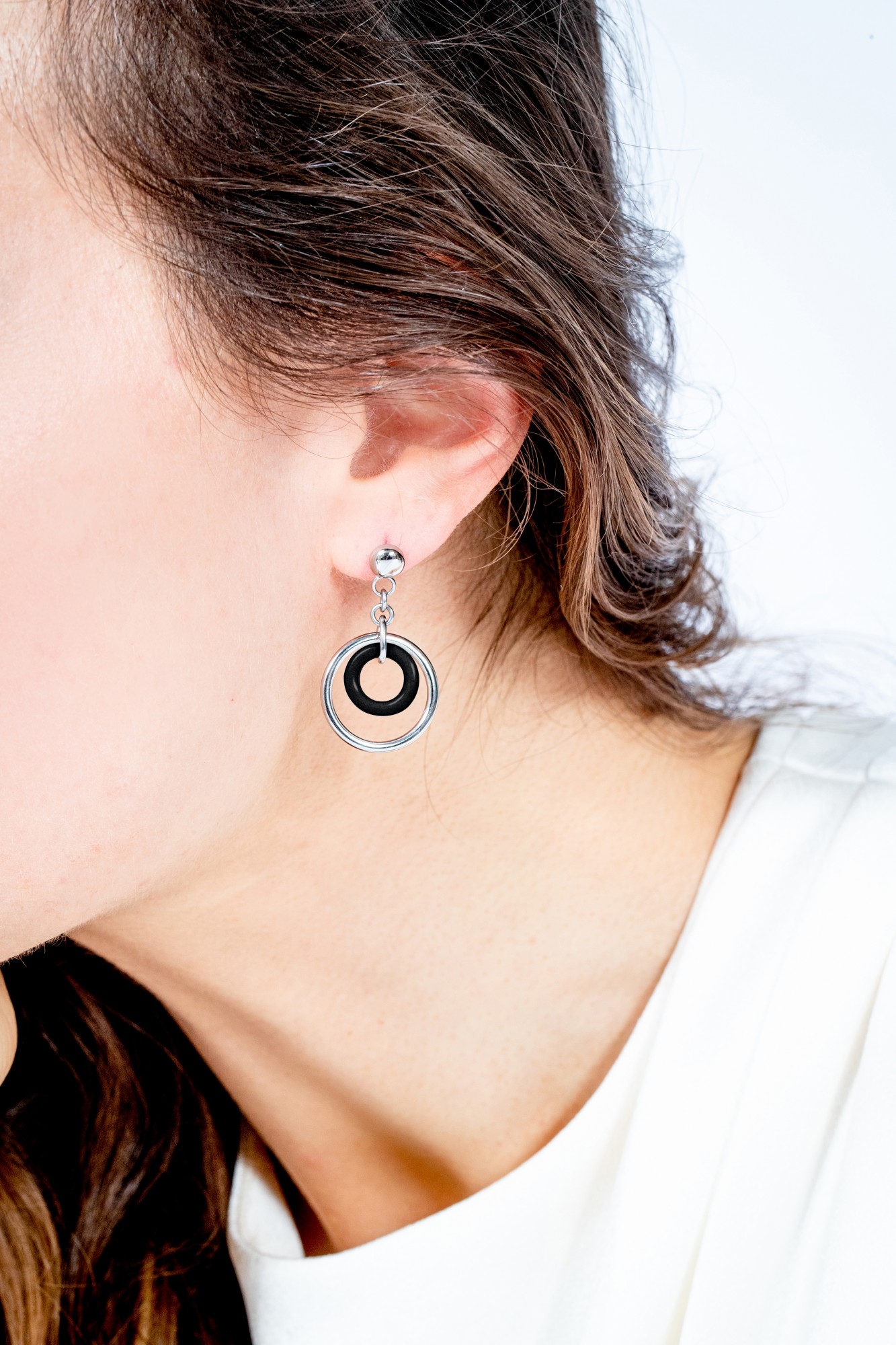 Boucles d'oreilles Peyton noir pour femme en céramique et acier 316L.