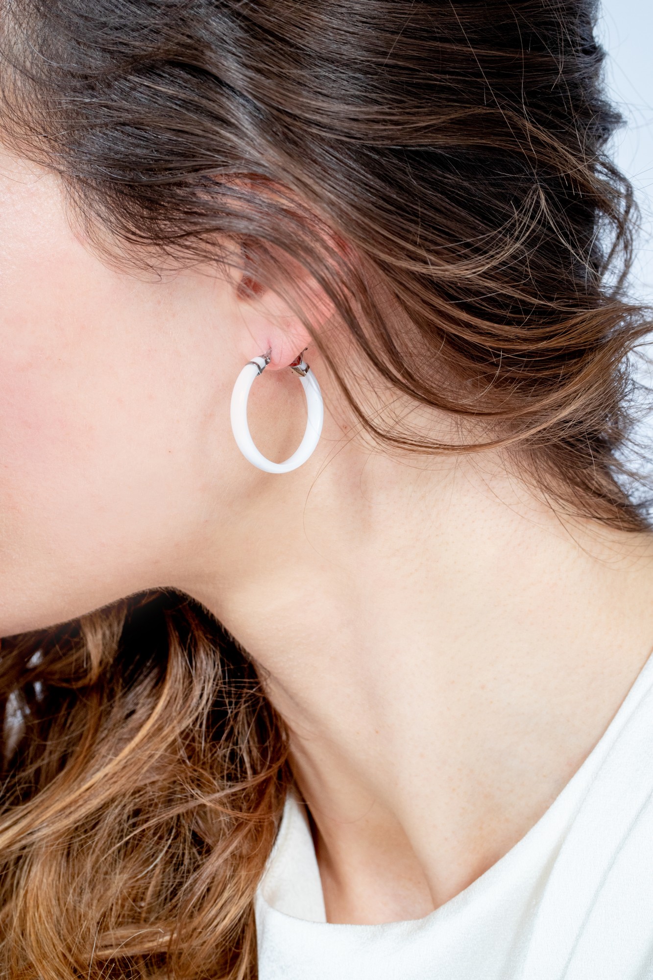 Boucles d'oreilles Clara blanc pour femme en céramique et acier 316L.