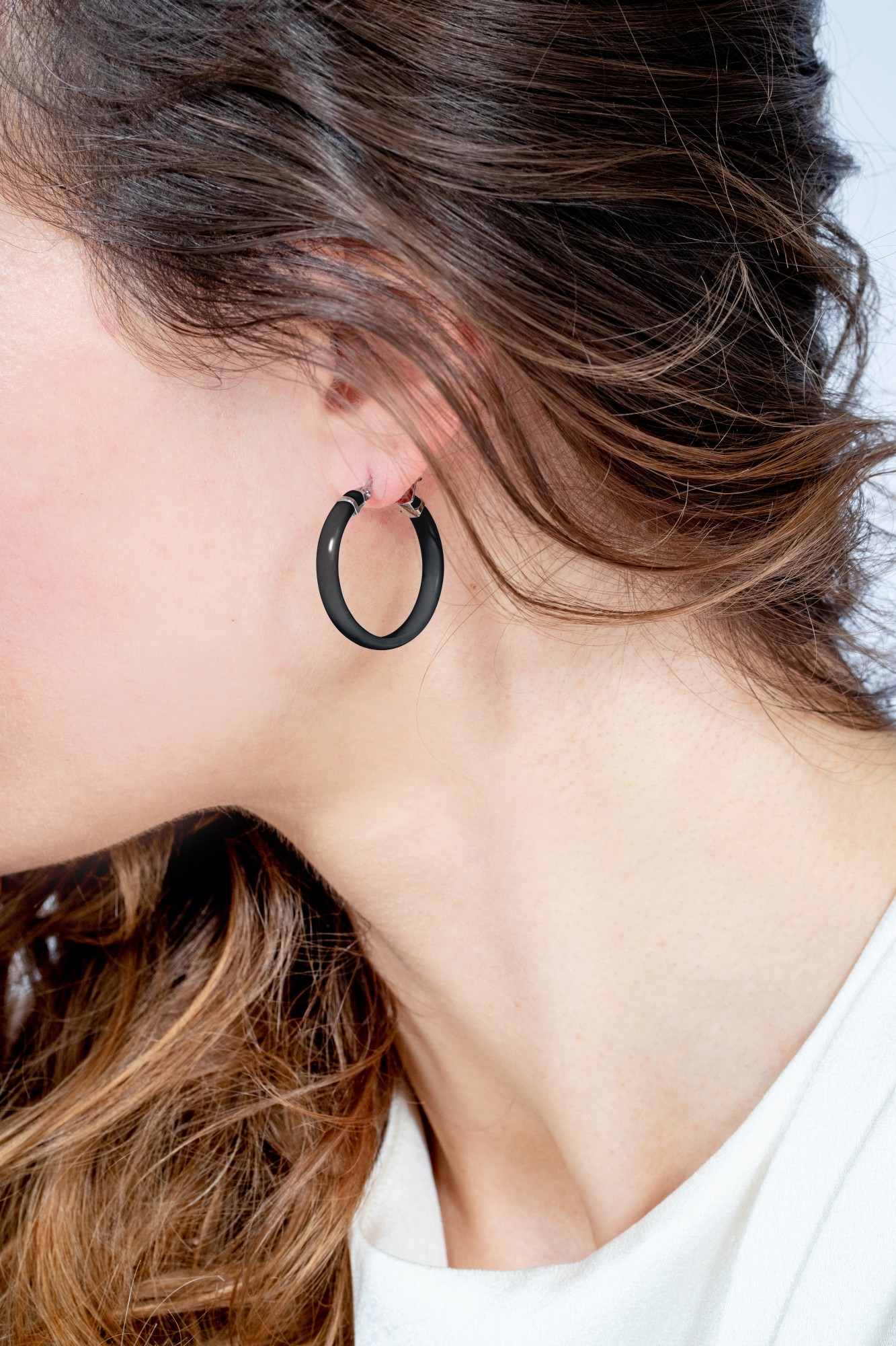 Boucles d'oreilles Clara noir pour femme en céramique et acier 316L.