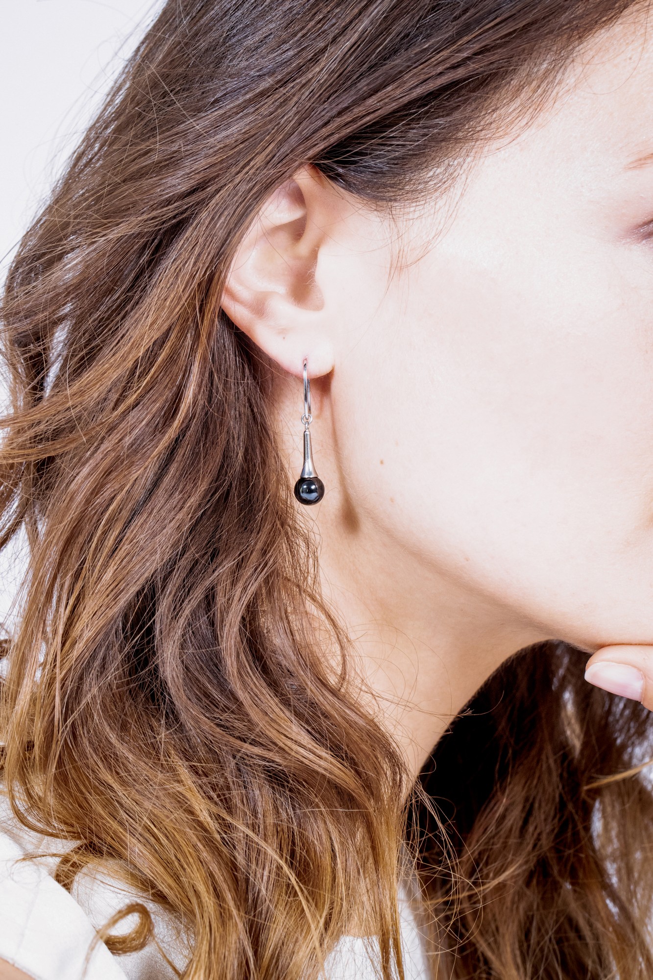 Boucles d'oreilles Luce noir pour femme en céramique et acier 316L.