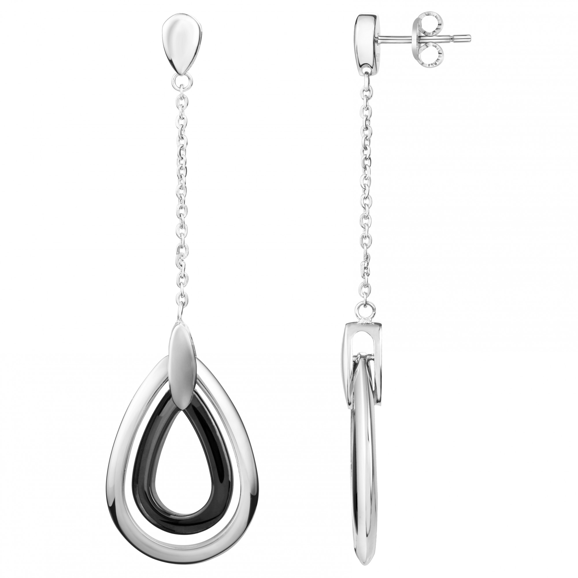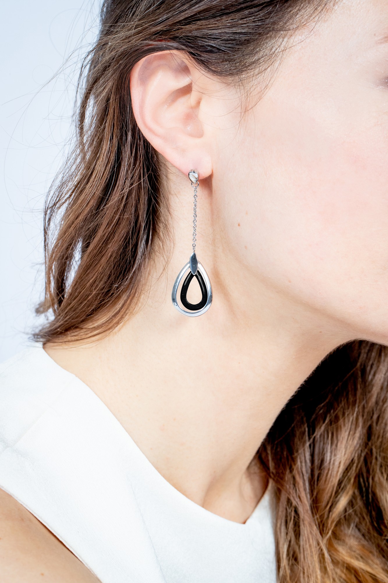 Boucles d'oreilles Alice noir pour femme en céramique et acier 316L.