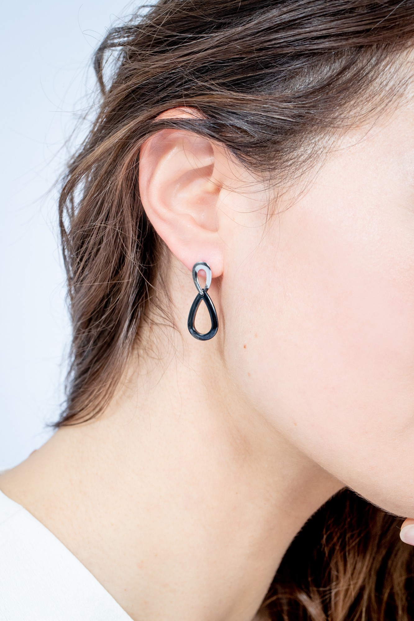 Boucles d'oreilles Sarah noir pour femme en céramique et acier 316L.