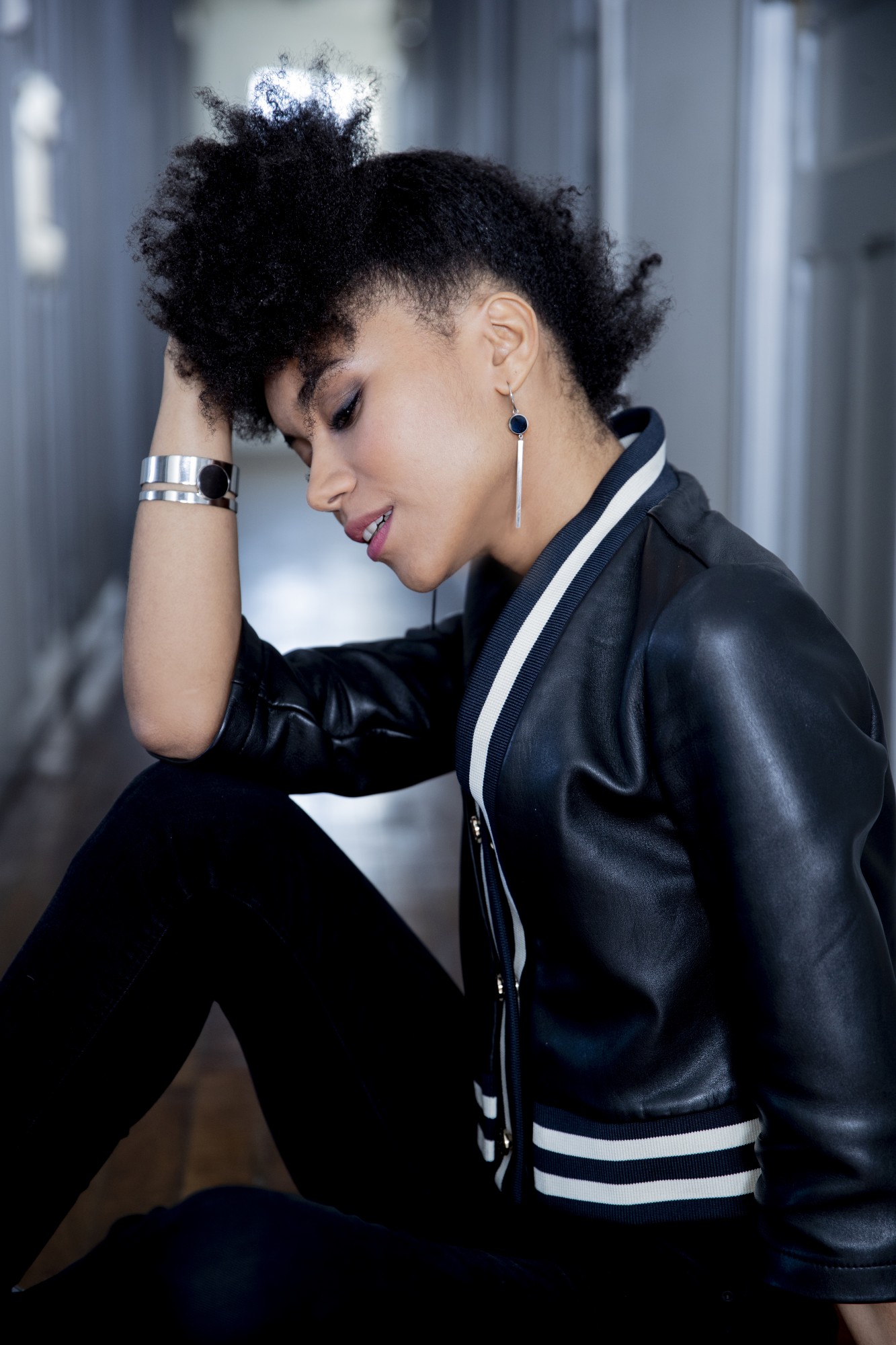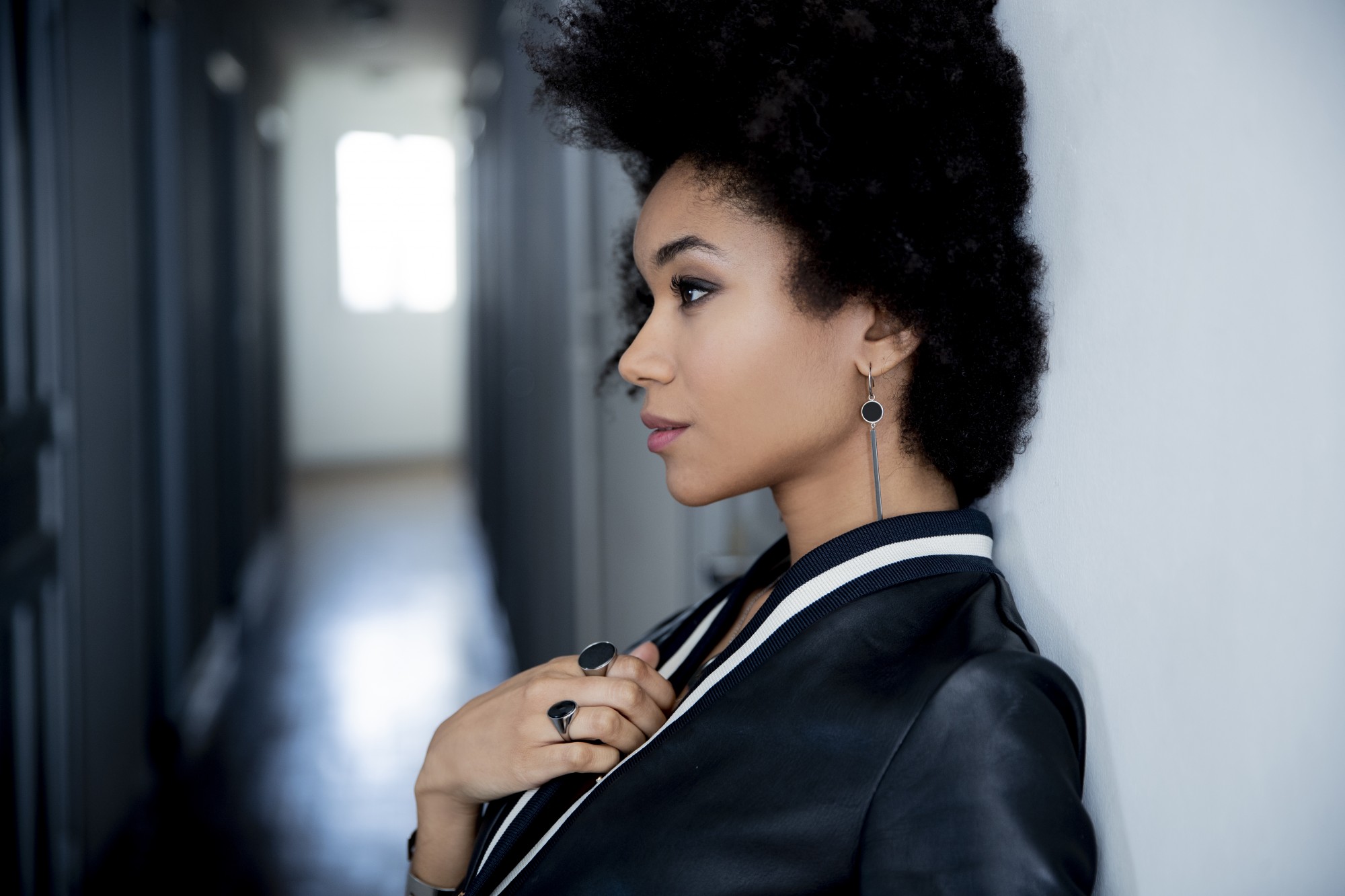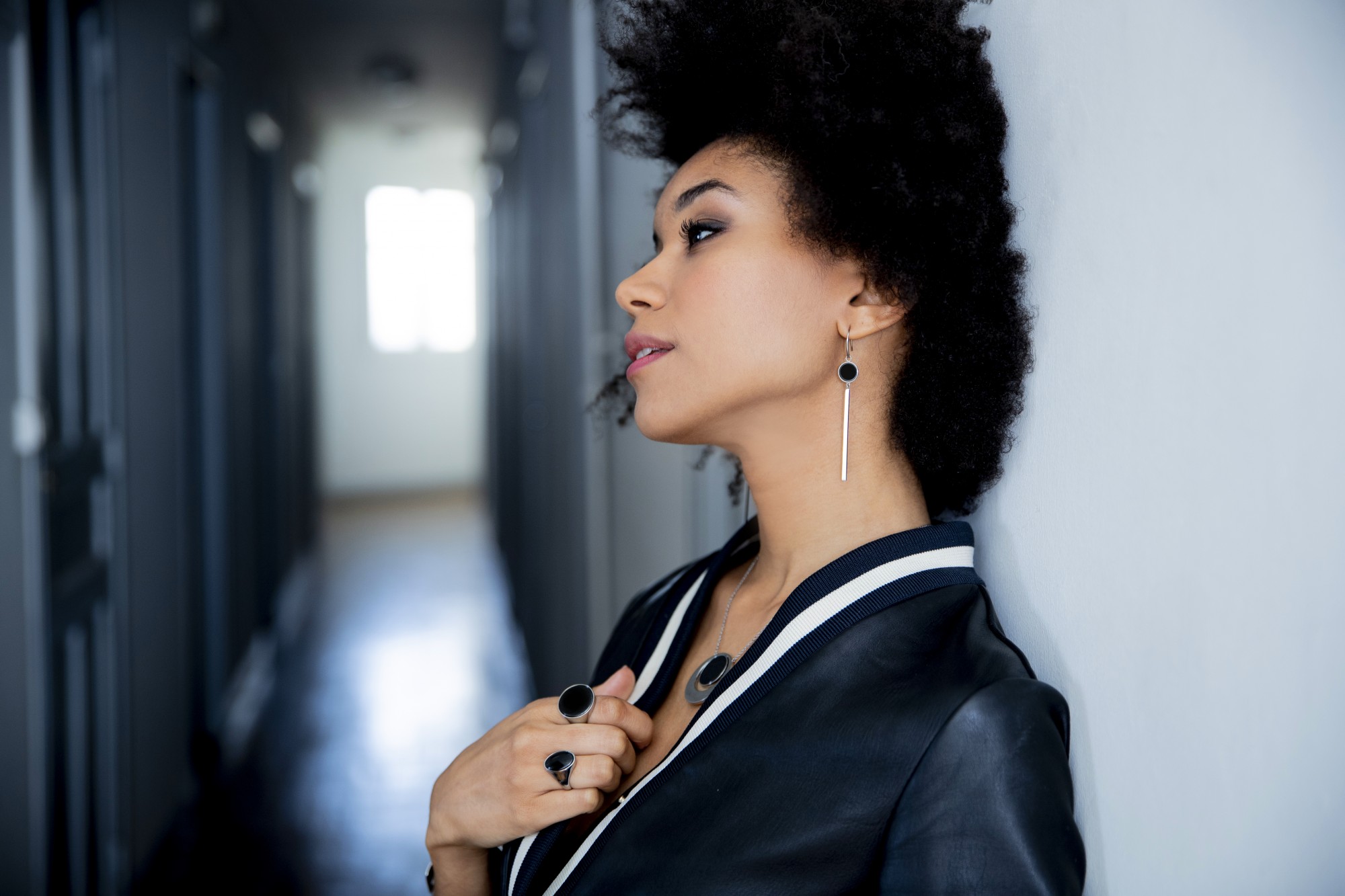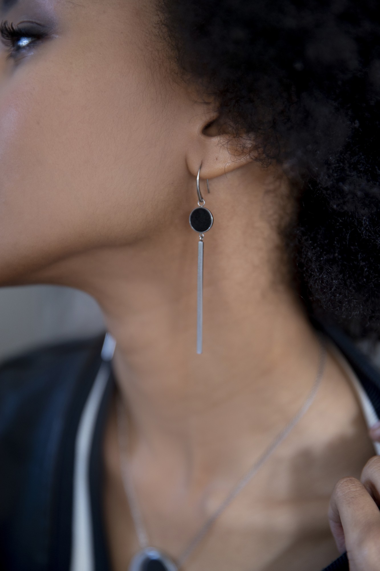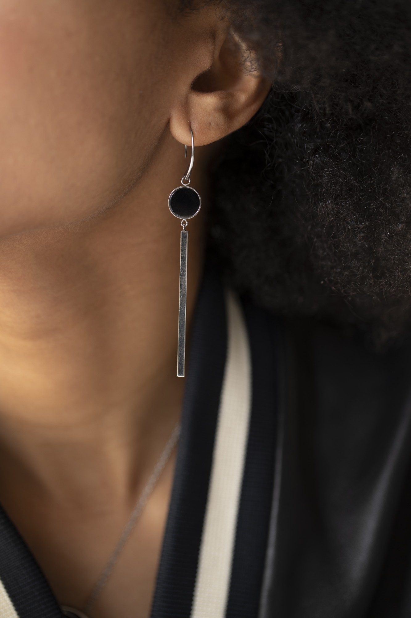Boucles d'oreilles Reagan noir pour femme en céramique et acier 316L.