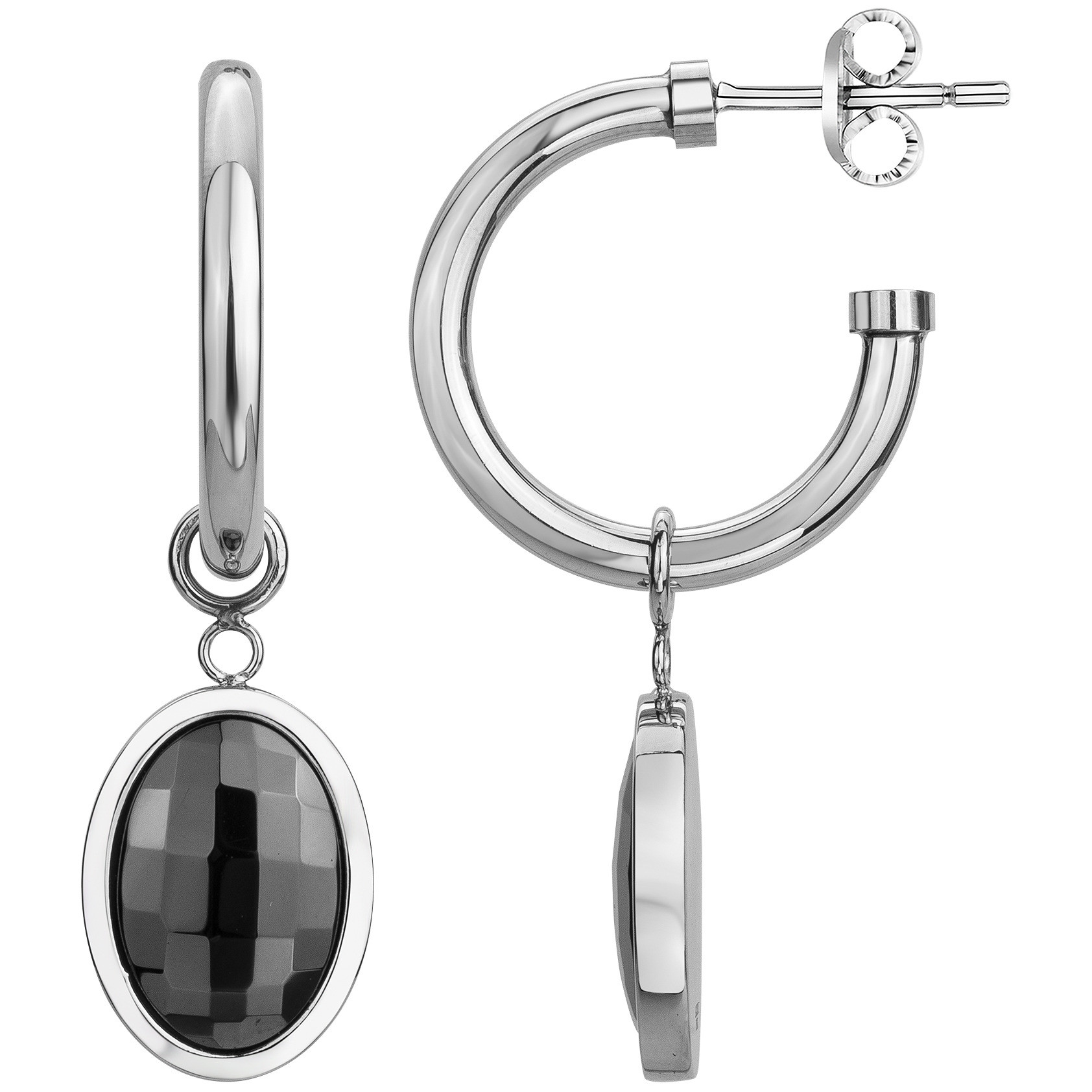 Boucles d'oreilles Maria noir pour femme en céramique et acier 316L.