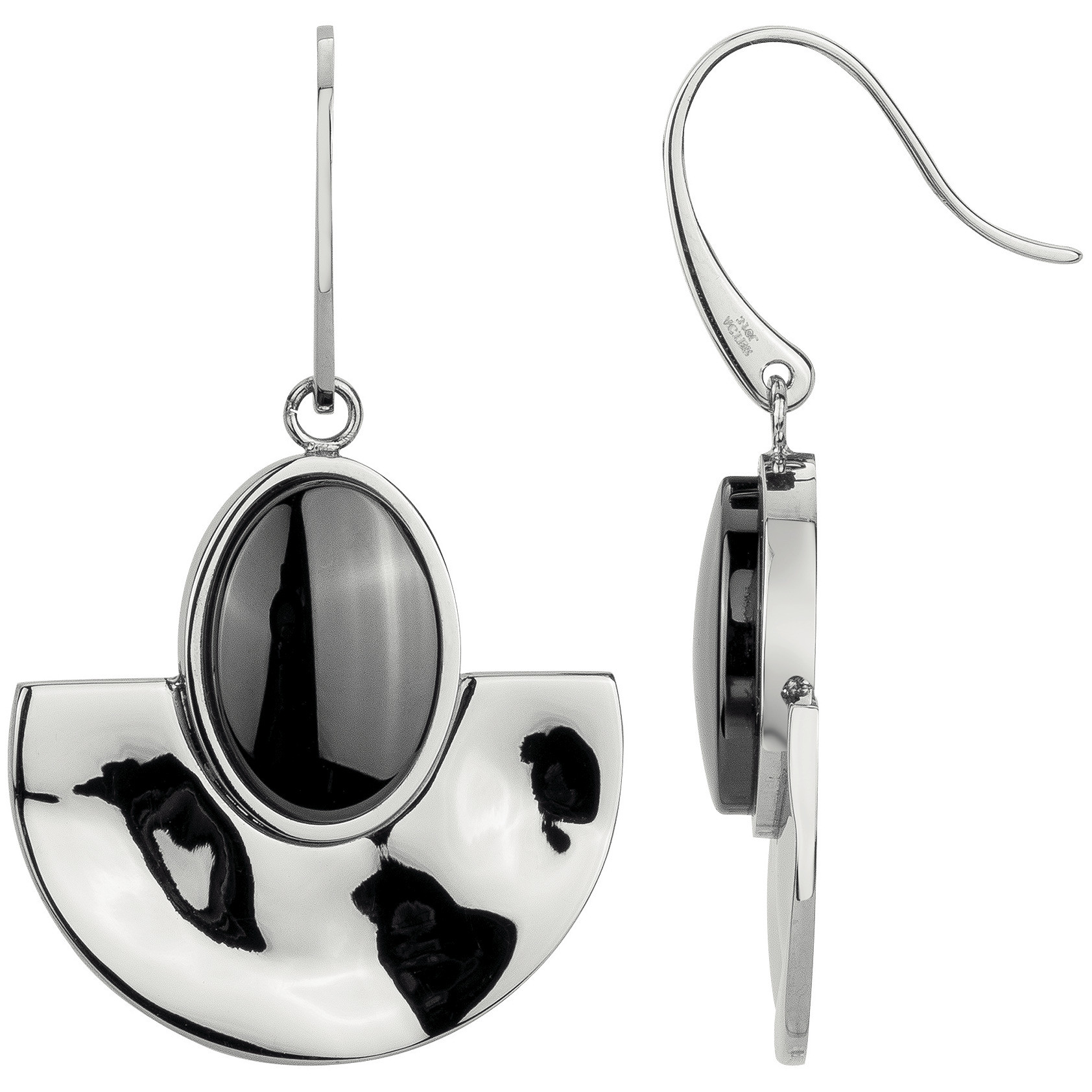 Boucles d'oreilles Thalia noir pour femme en céramique et acier 316L.