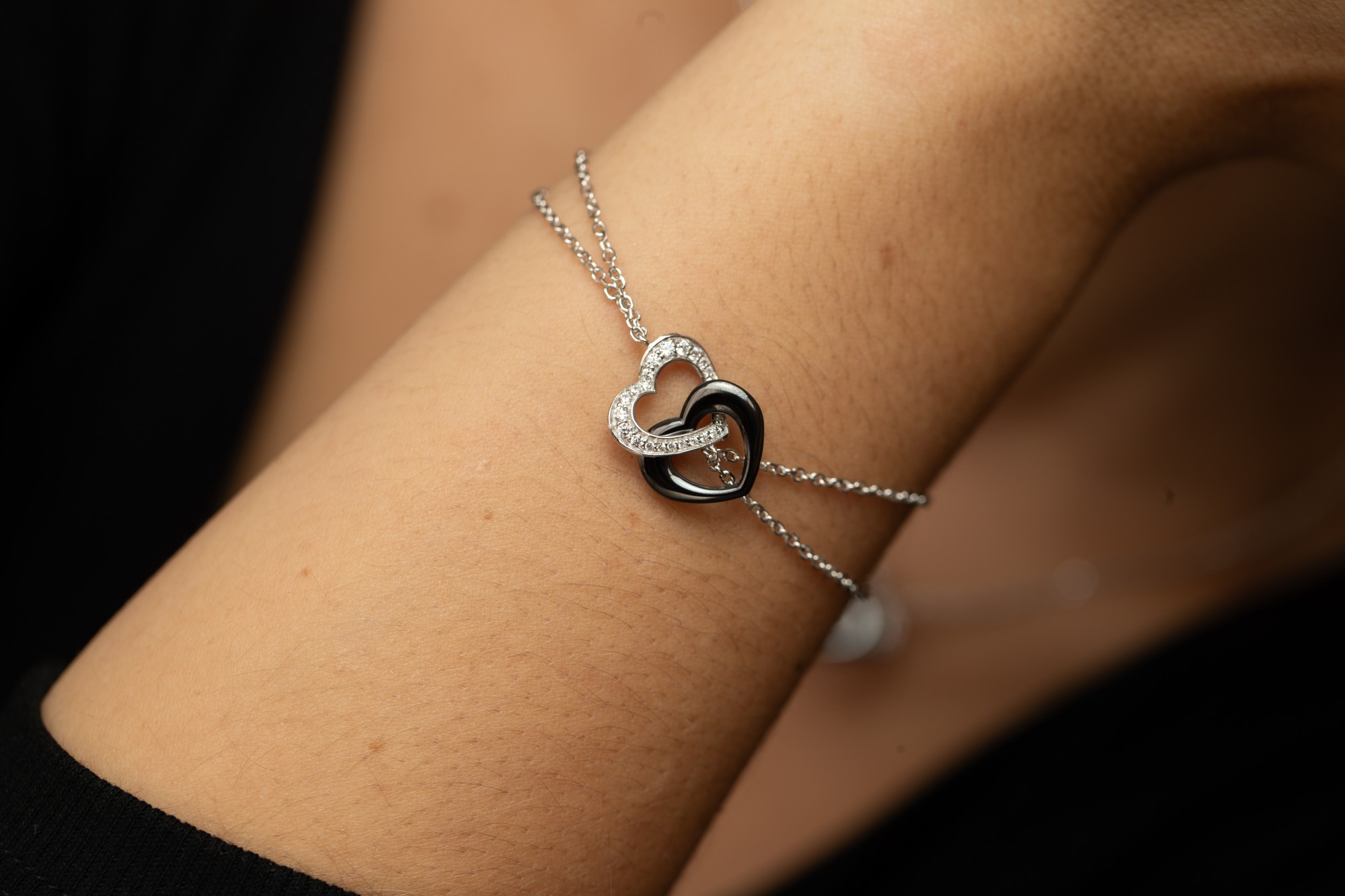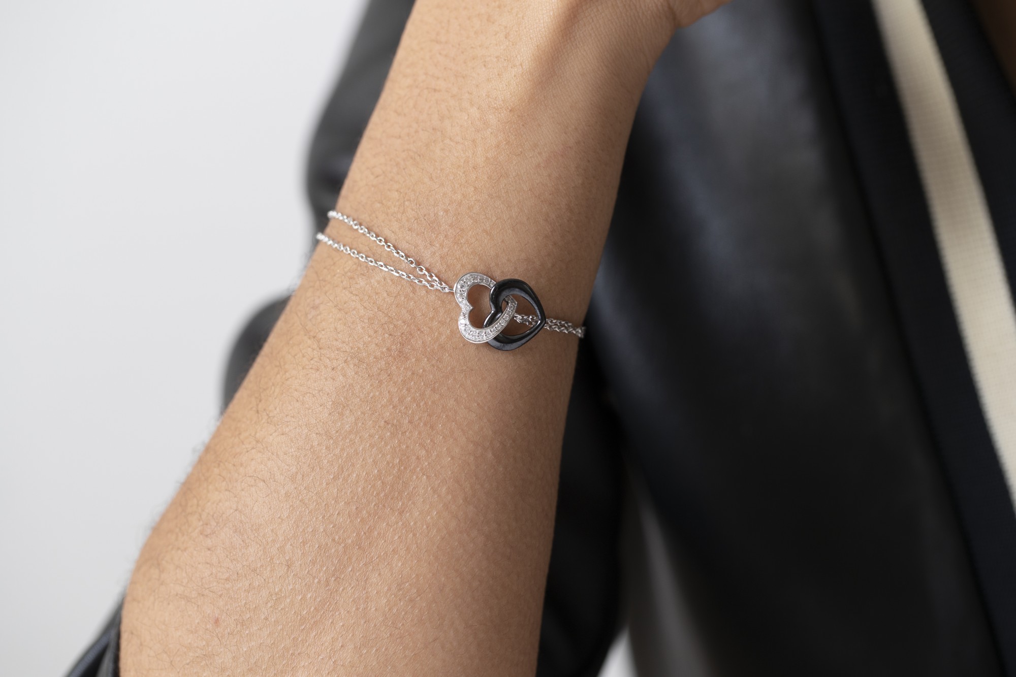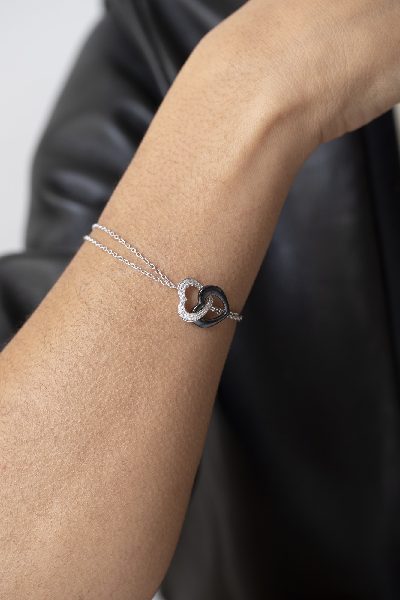 Ses deux cœurs entrelacés expriment l’union et la complicité, portés par une double chaîne en argent 925 rhodié.