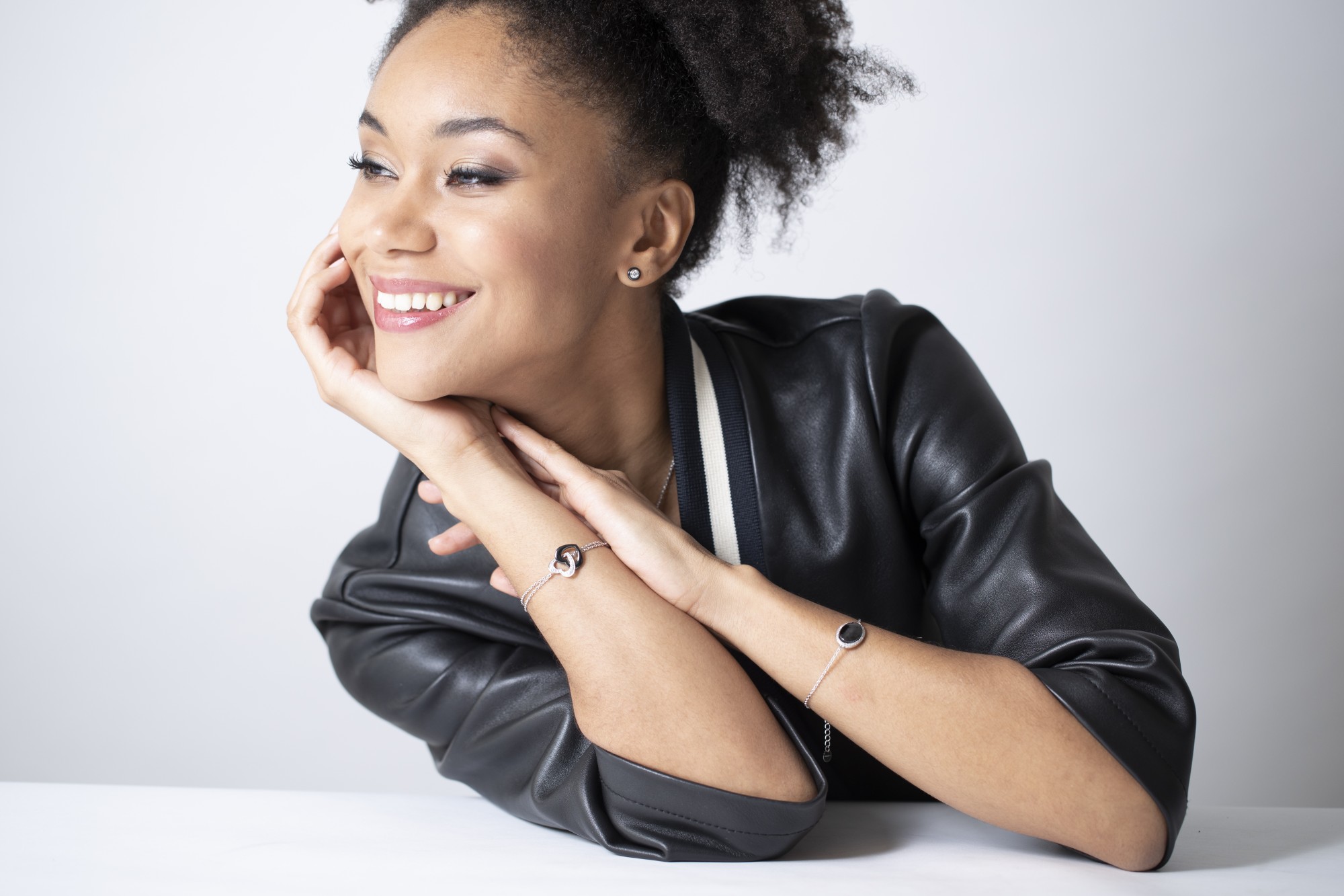 Entre mystère et éclat, le bracelet Velours associe la profondeur de la céramique noire à la brillance des oxydes de zirconium.