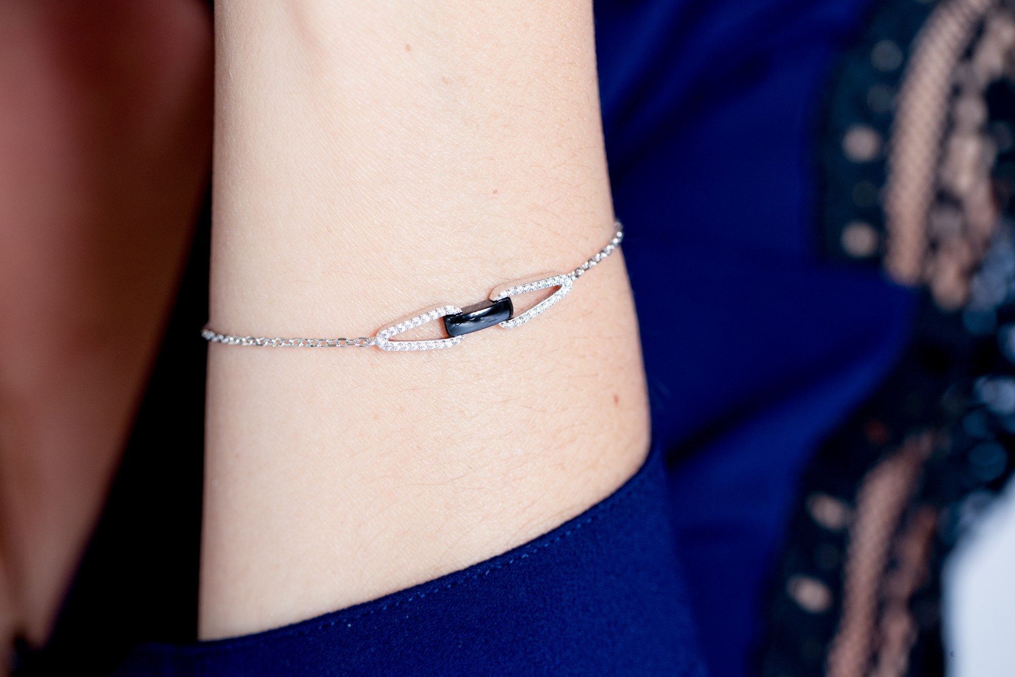 Le bracelet Basalte séduit par son design graphique et audacieux. En son centre, un maillon en céramique noire vient s’unir à deux maillons géométriques en argent 925 rhodié, finement sertis d’oxydes de zirconium scintillants. Cette composition dessine une silhouette moderne et architecturale, où les lignes structurées contrastent avec la profondeur de la céramique. Monté sur une chaîne fine et ajustable, ce bijou raffiné incarne l’élégance contemporaine, pensé pour sublimer vos gestes avec éclat.