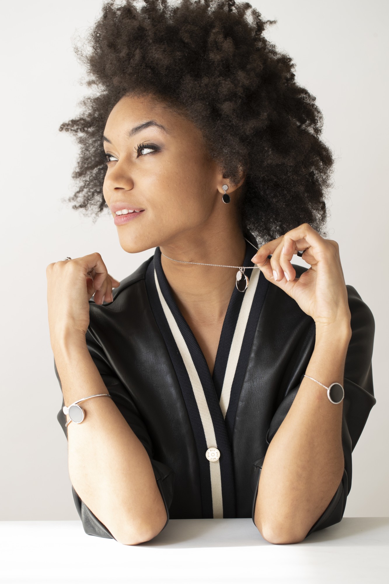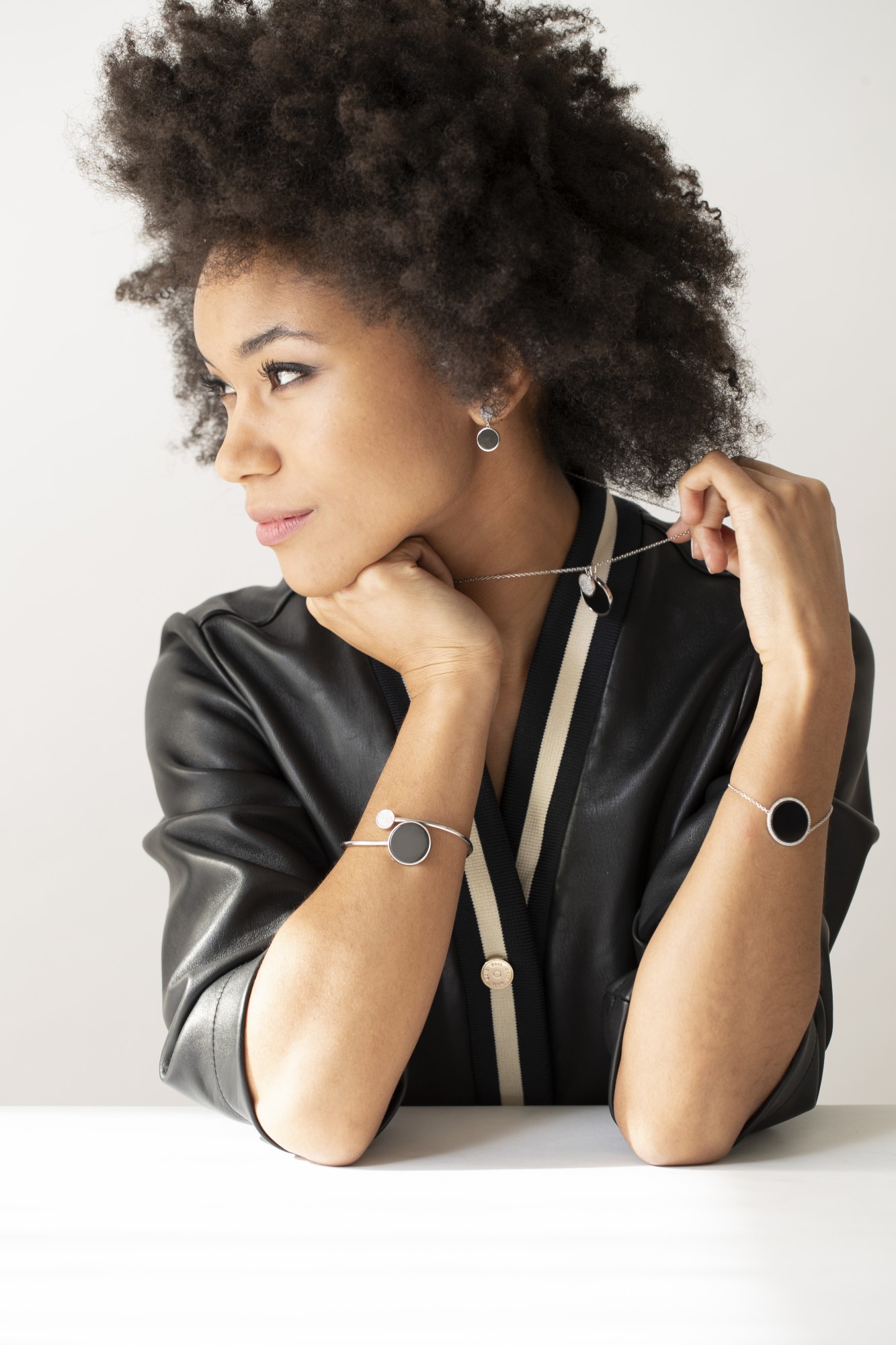 Le bracelet Satsuma incarne l’élégance minimaliste dans sa forme la plus pure. En son centre, un large disque de céramique noire capte la lumière, délicatement entouré d’oxydes de zirconium scintillants. Monté sur une fine chaîne en argent 925 rhodié, il allie intensité et raffinement avec une parfaite harmonie.