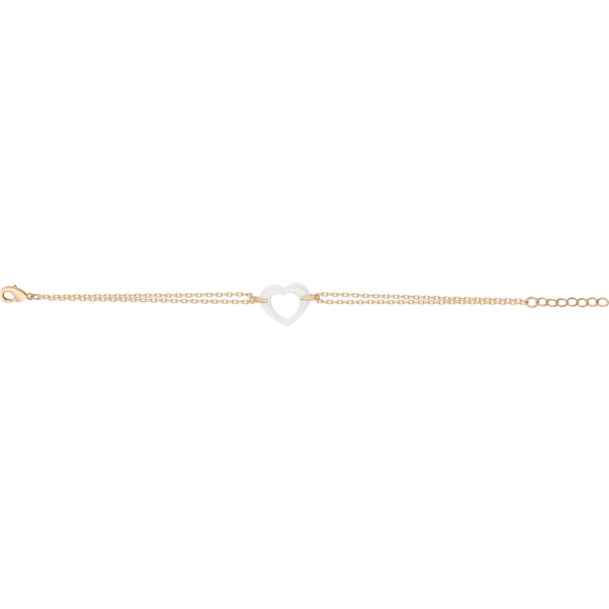 Symbole de douceur et de lumière, le bracelet Tesson séduit par la simplicité de son cœur ajouré en céramique blanche. Relié à une double chaîne en plaqué or 18 carats, il évoque la pureté d’un lien sincère et la délicatesse des émotions partagées.