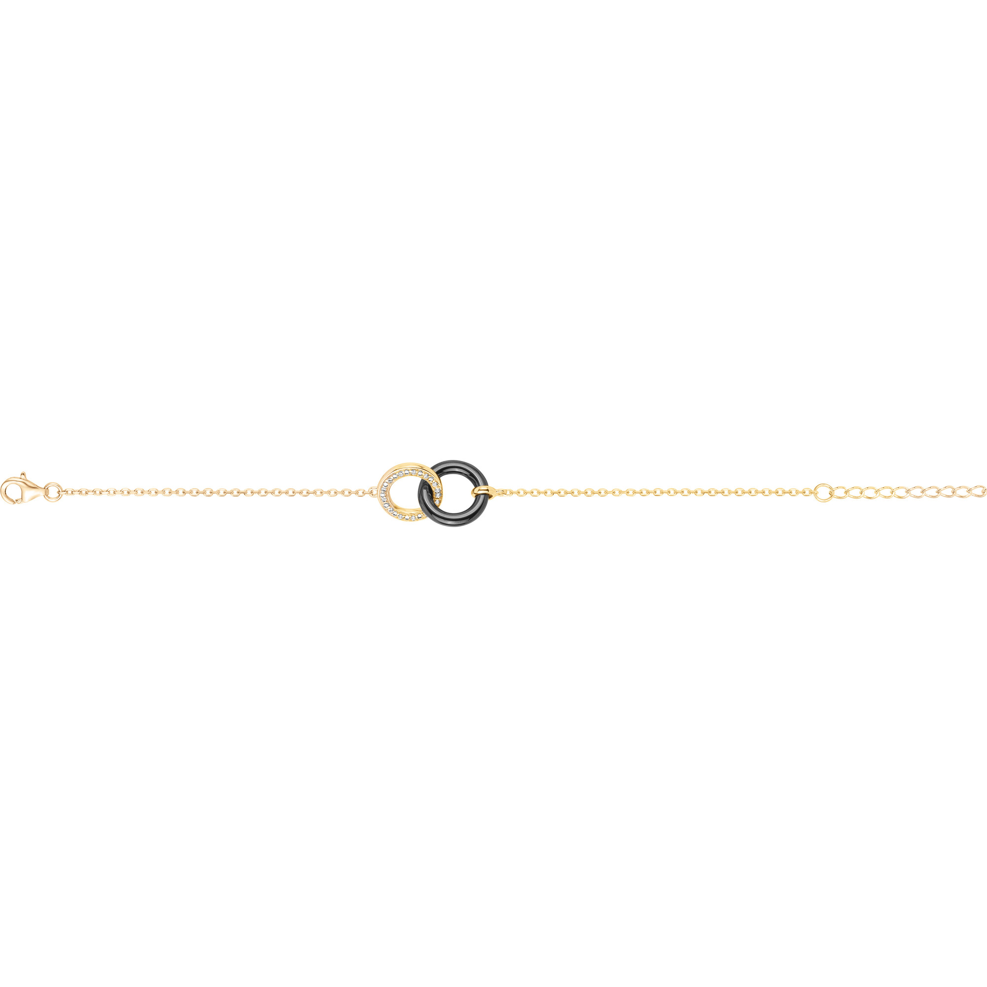 Allure contemporaine et raffinement maîtrisé définissent le bracelet Intemporel. Son duo d’anneaux entrelacés, en céramique noire et pavage d’oxydes de zirconium, crée un contraste fort et élégant.