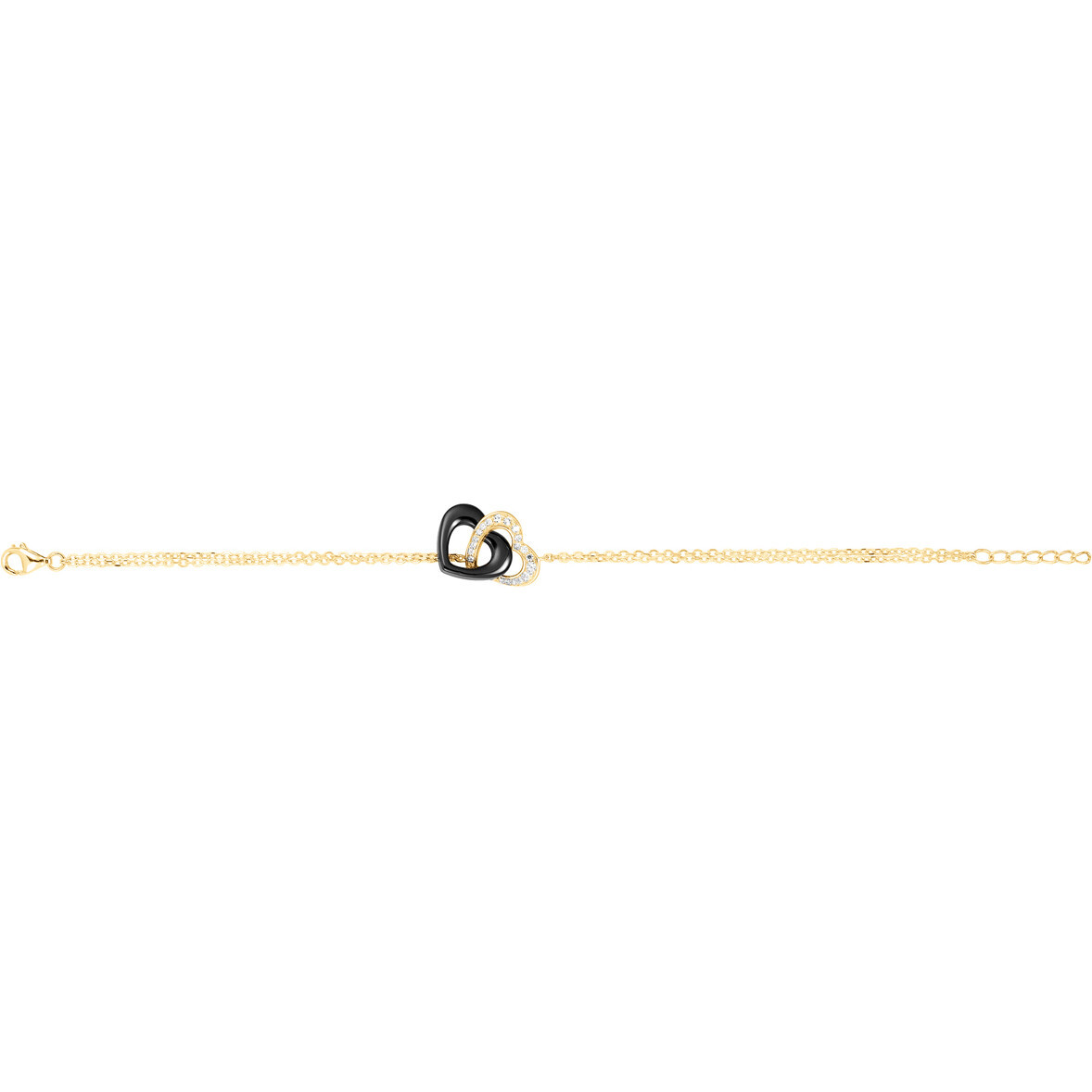 Le bracelet Talavera joue sur les contrastes et la profondeur. Ses deux cœurs entrelacés, l’un en céramique noire intense, l’autre serti d’oxydes étincelants, traduisent la force du lien et la beauté des émotions partagées.