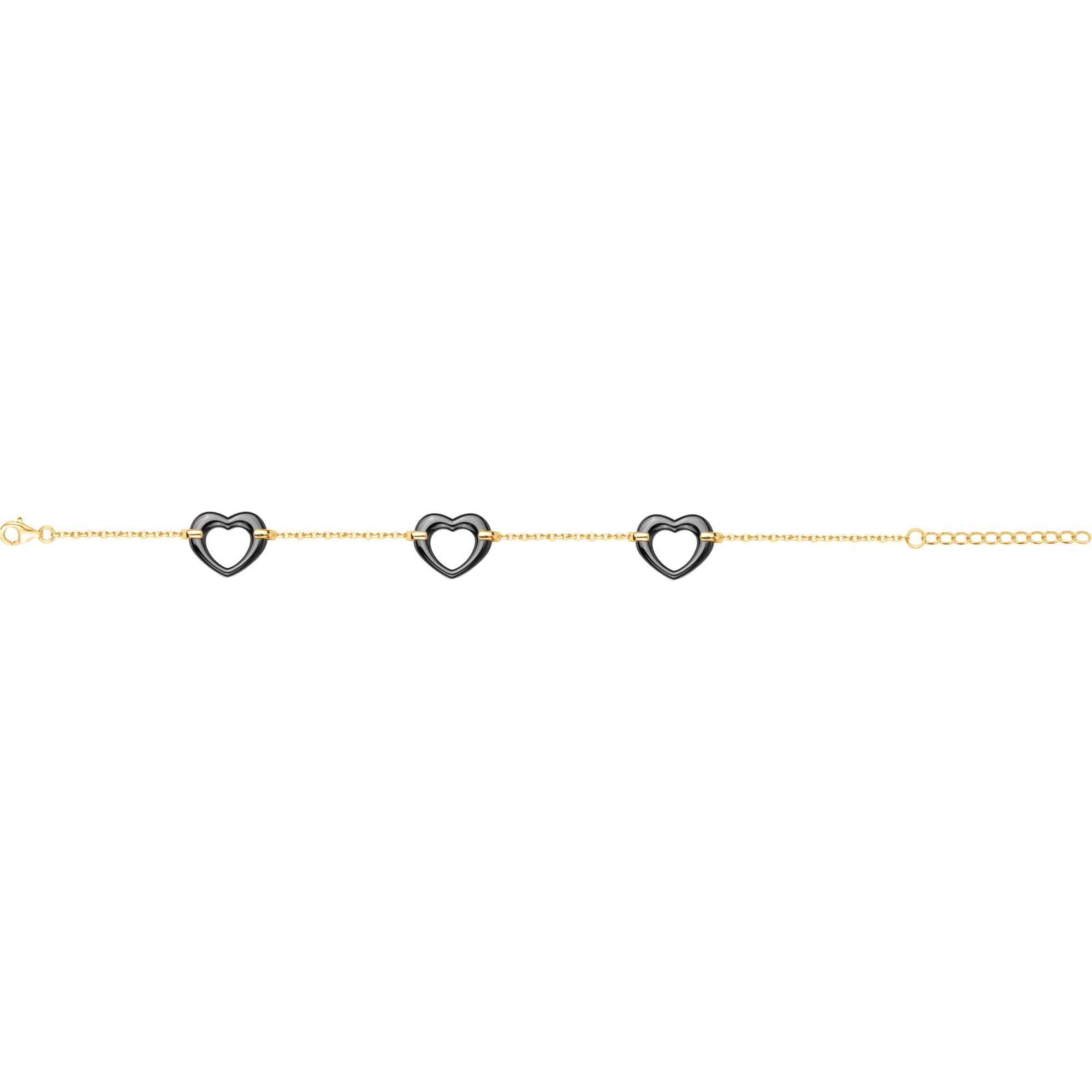 Entre force et émotion, le bracelet Tesson associe trois cœurs ajourés en céramique noire à la chaleur du plaqué or 18 carats.
