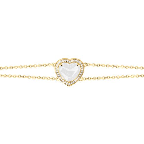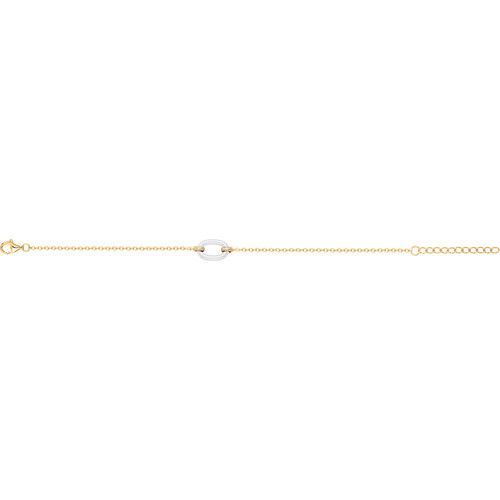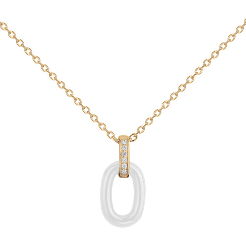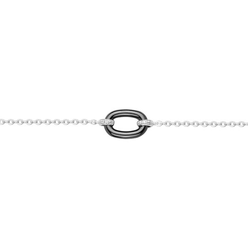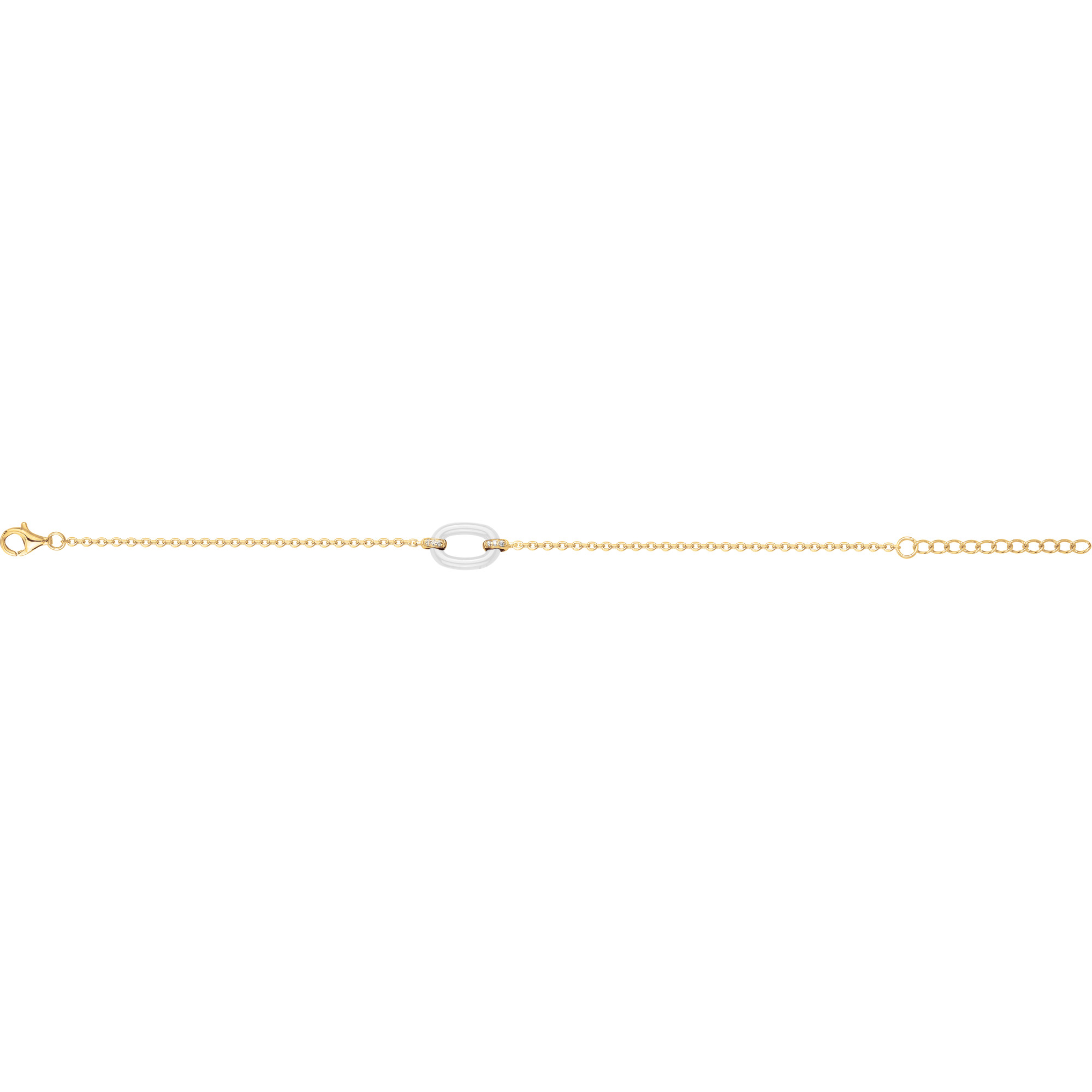 Le bracelet Silice séduit par sa pureté et sa simplicité maîtrisée. En son centre, un anneau de céramique blanche se relie à une fine chaîne en plaqué or 18 carats, ponctuée de délicats oxydes de zirconium.