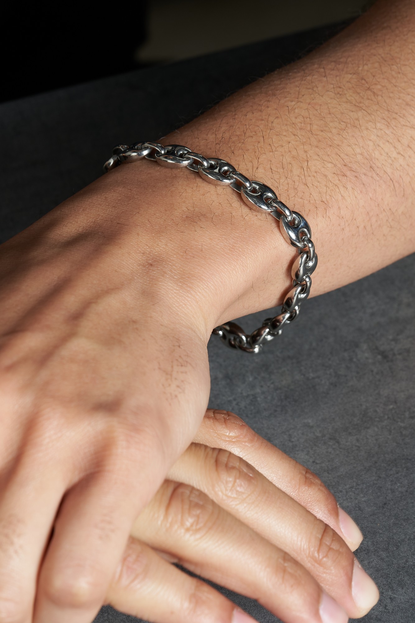 Un bracelet tout en acier inoxydable. Le bracelet Joshua pour homme est composé d'acier 316L inoxydable. Il possède d'originaux maillons grains de café. La fermeture est permise par un fermoir mousqueton et le bijou profite d'une garantie de 2 ans. Un design original pour le quotidien. Ce bijou aussi discret qu'original te permet d'affirmer ton style différent sans effort. Ce bracelet masculin de Phebus est parfait pour habiller le poignet en toute occasion. Ses mailles grains de café te permettent de te démarquer et son coloris gris brillant s'associe à tout sans difficulté.